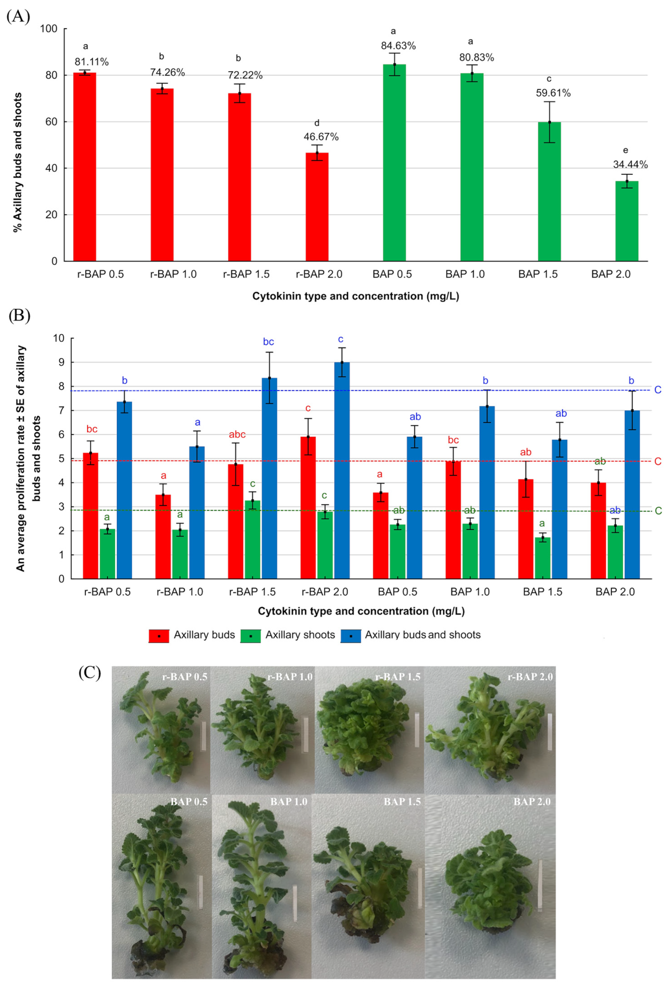 2.1. Effect of Cytokinins on Shoot Multiplication