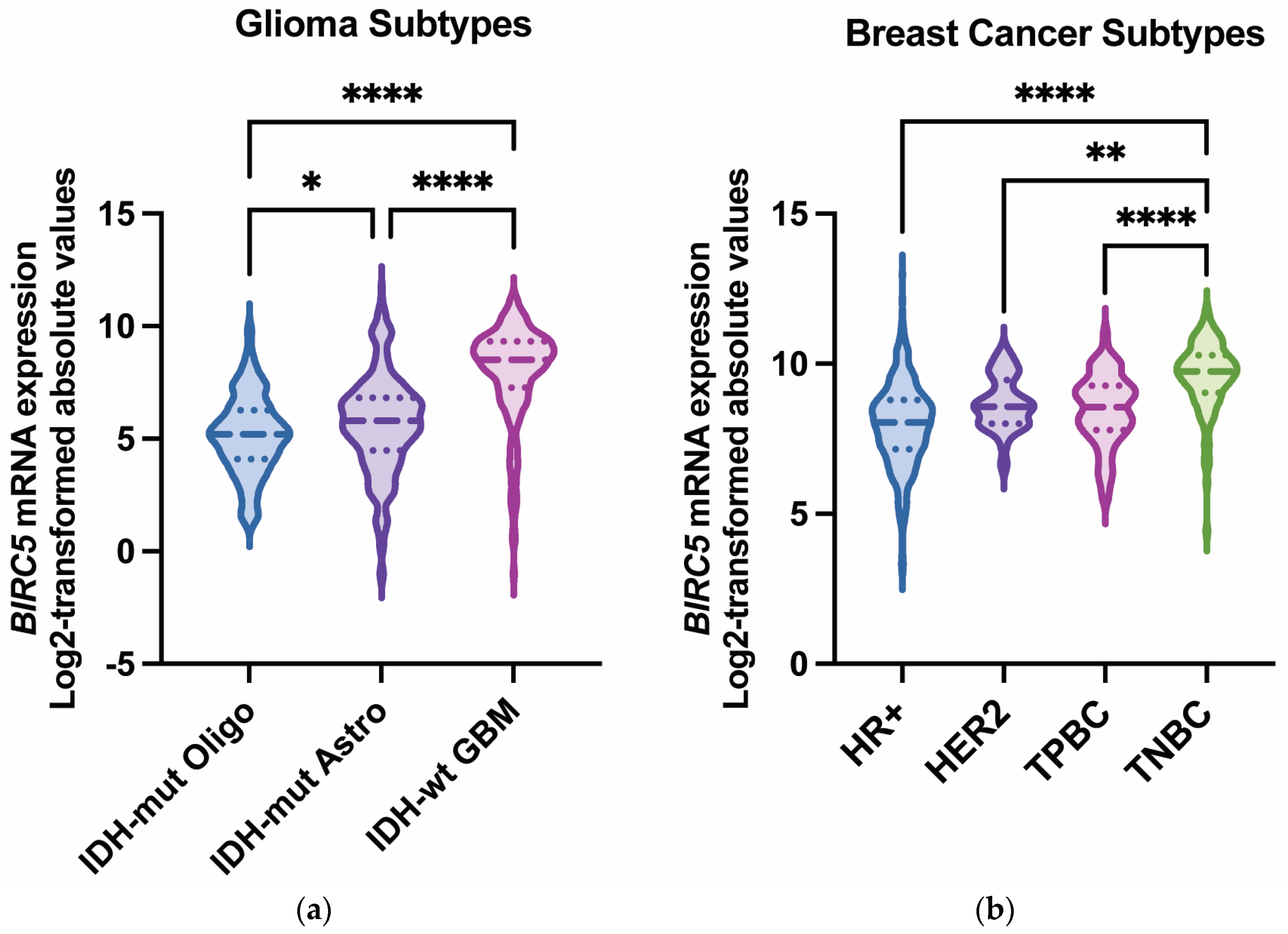 - Tong, X.; Yang, P.; Wang, K.; Liu, Y.; Liu, X.; Shan, X.; Huang, R.; Zhang, K.; Wang, J. Survivin is a prognostic indicator in glioblastoma and may be a target of microRNA-218. Oncol. Lett. 2019, 18, 359–367. [Google Scholar] [CrossRef]