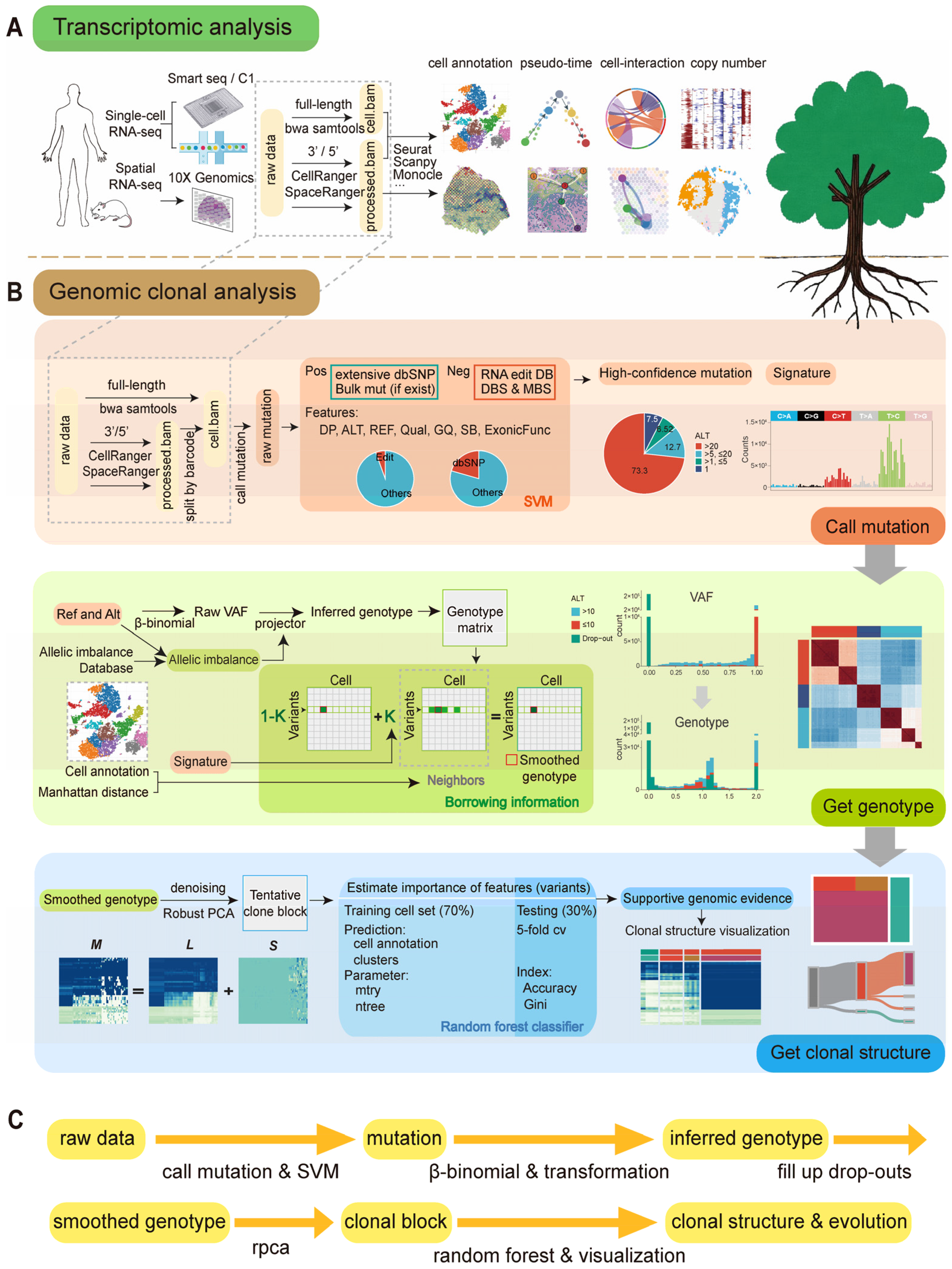 - This work introduces scClone, a full-process clonal evolution inference toolkit based on mutation detection that relies solely on single-cell transcriptome sequencing. It includes a reliable mutation detection pipeline, a series of genotype inference algorithms, and clonal structure visualization.
