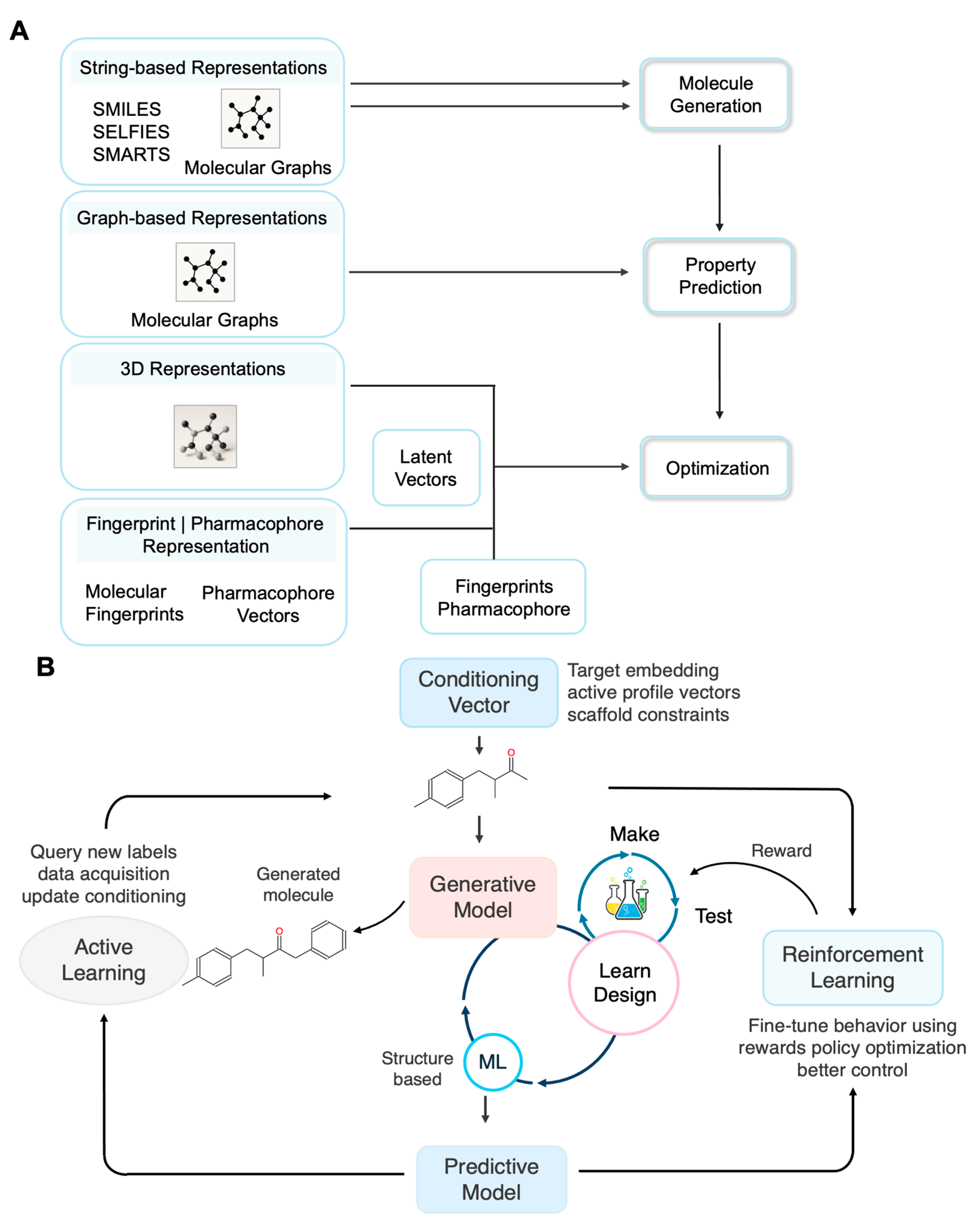- Zeng, X.; Wang, F.; Luo, Y.; Kang, S.; Tang, J.; Lightstone, F.C.; Fang, E.F.; Cornell, W.; Nussinov, R.; Cheng, F. Deep Generative Molecular Design Reshapes Drug Discovery. Cell Rep. Med. 2022, 3, 100794. [Google Scholar] [CrossRef] [PubMed]