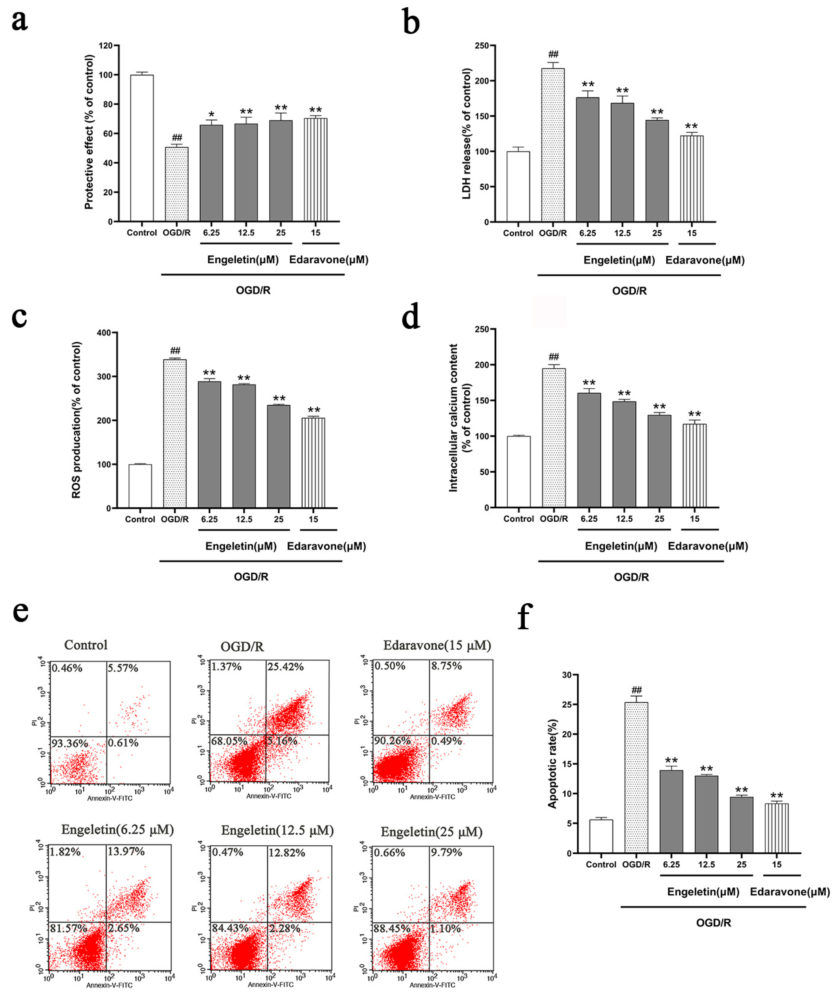2.5. Neuroprotective Effect of Engeletin in the OGD/R Model