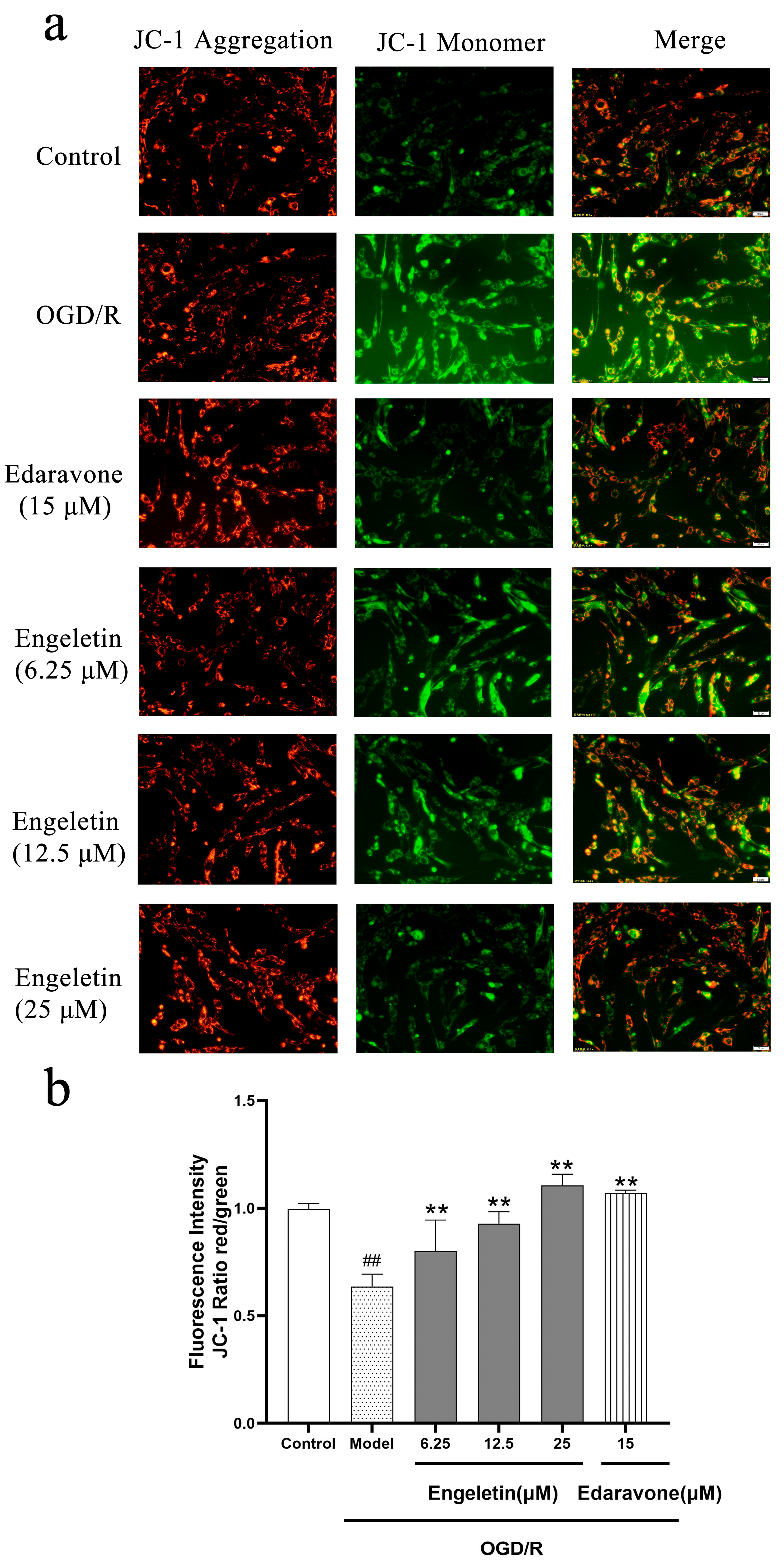 2.5.3. Engeletin Attenuates OGD/R-Induced Mitocghondrial Membrane Potential Loss