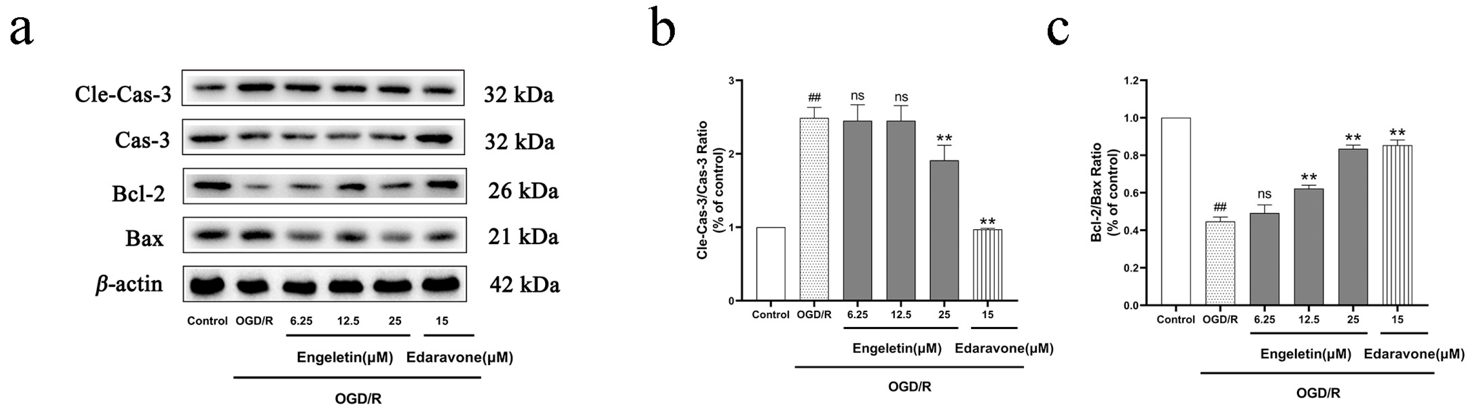 2.6.2. Engeletin Inhibits OGD/R-Induced Mitochondrial-Pathway-Mediated Apoptosis