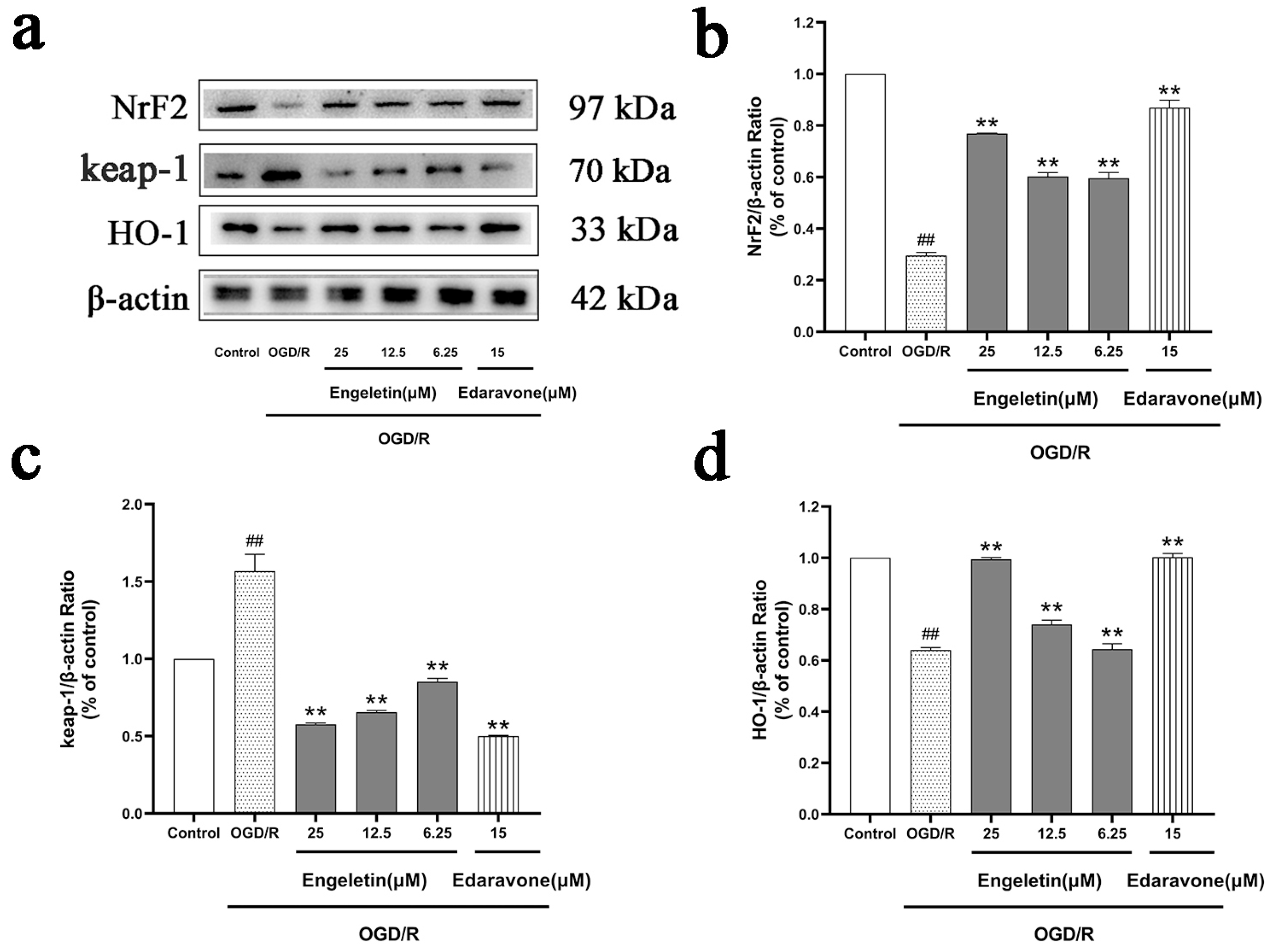 2.6.4. Engeletin Activates the NRF2/KEAP1/HO-1 Antioxidant Pathway Under OGD/R Conditions