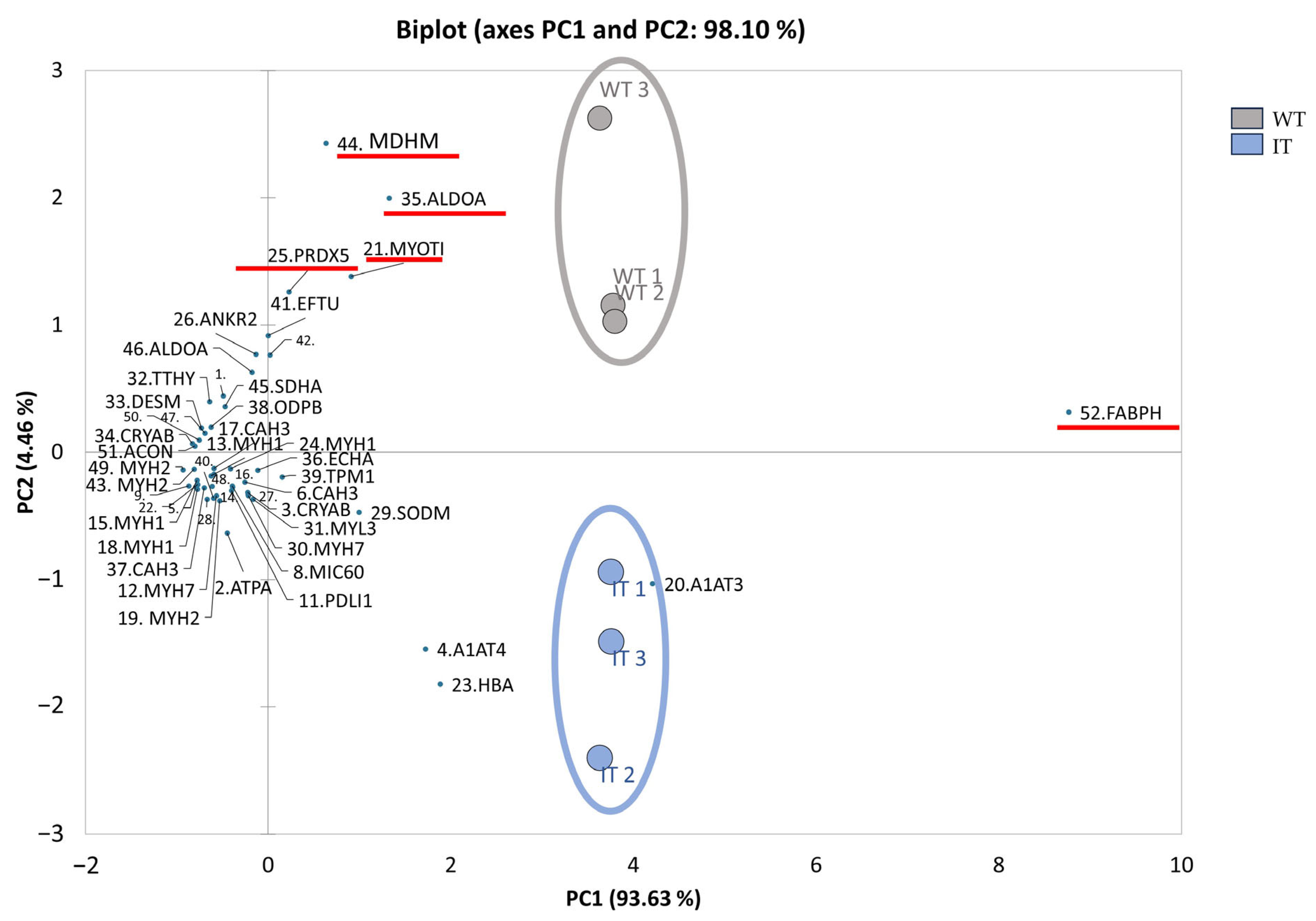 2.1. WT and IT Mice Muscles Present a Differential Protein Pattern