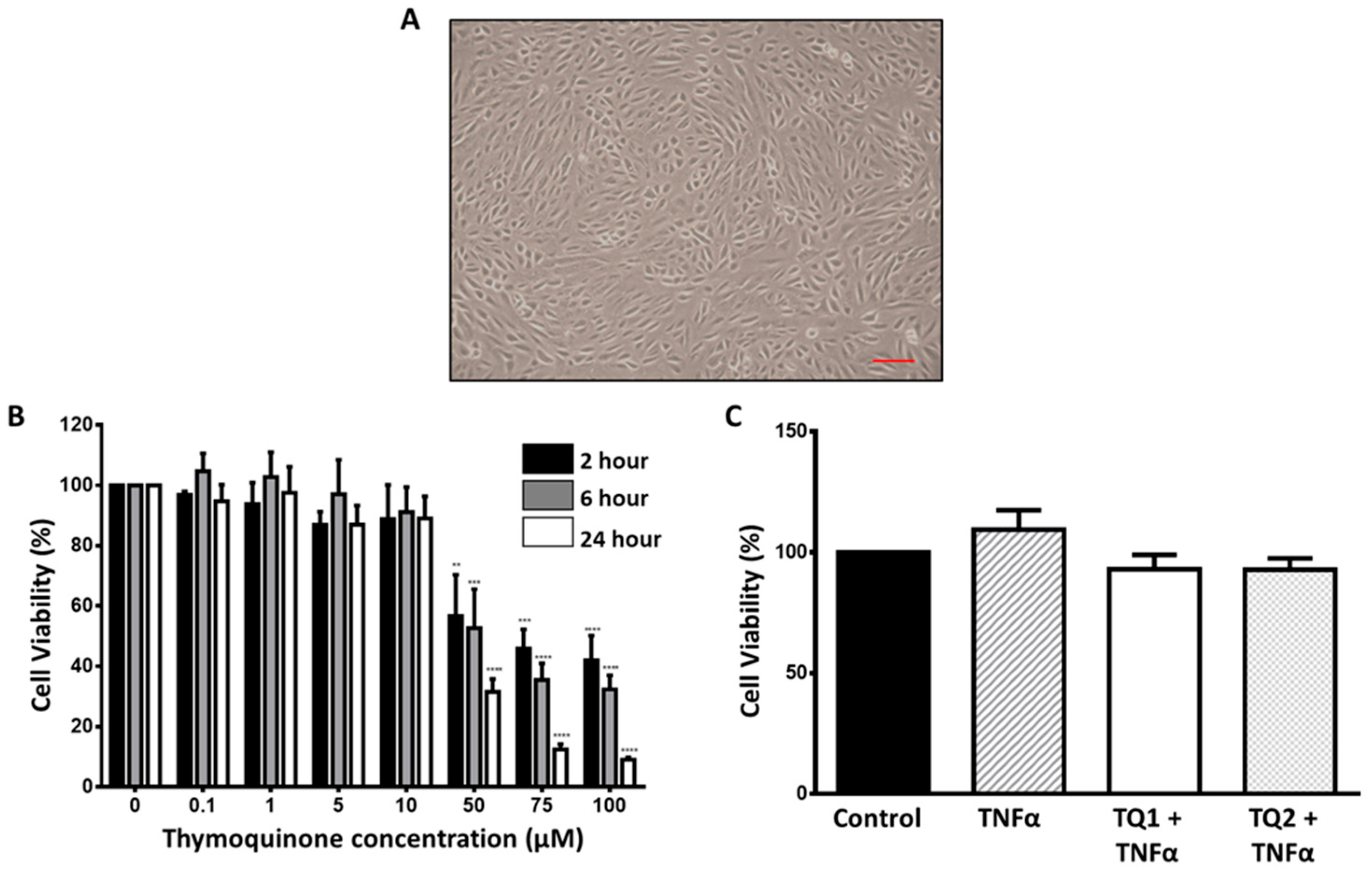 2.1. Dose–Response Effect of Thymoquinone on ARPE-19 Cells