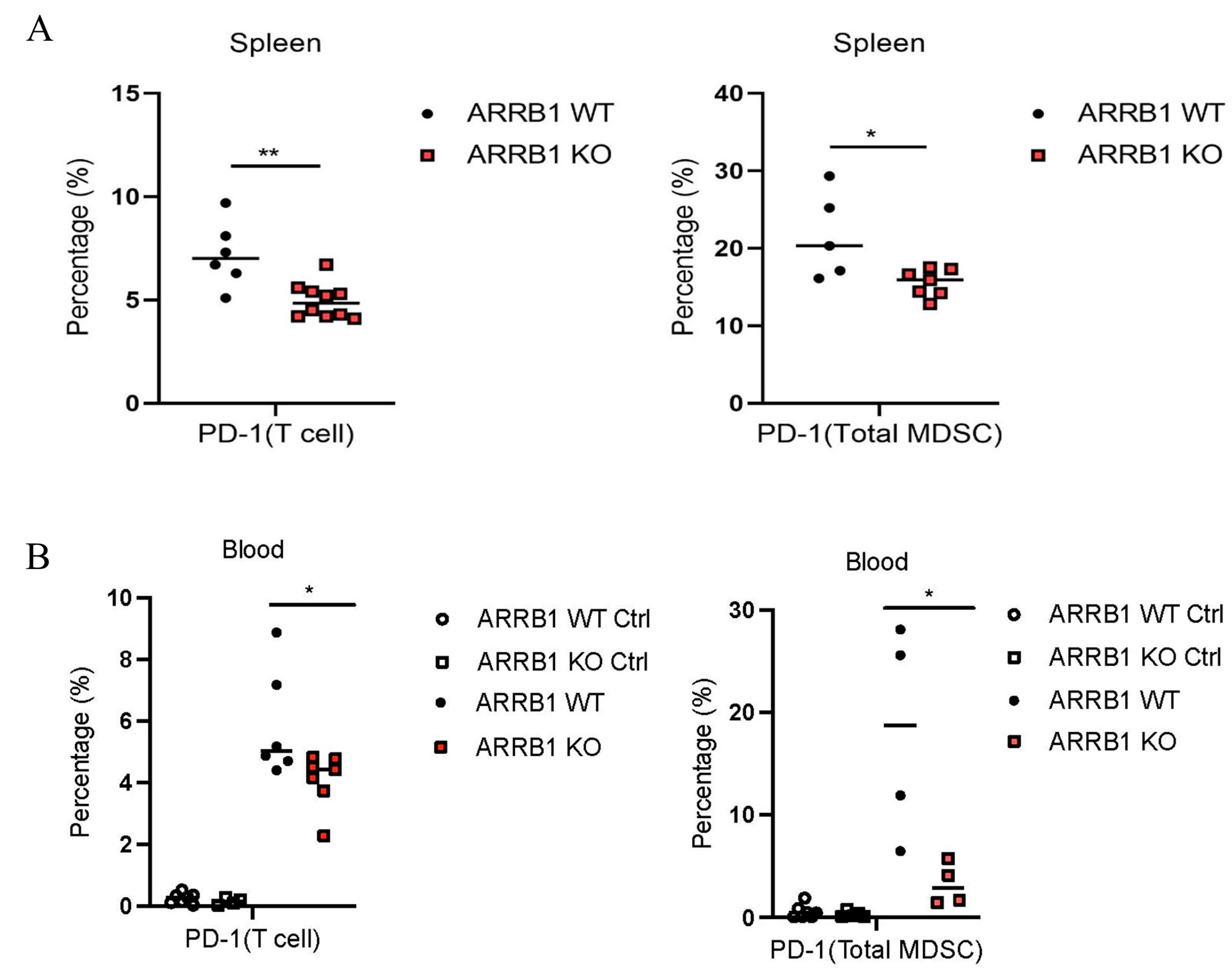 2.5. ARRB1 Regulates PD-1 Expression on Immune Cells