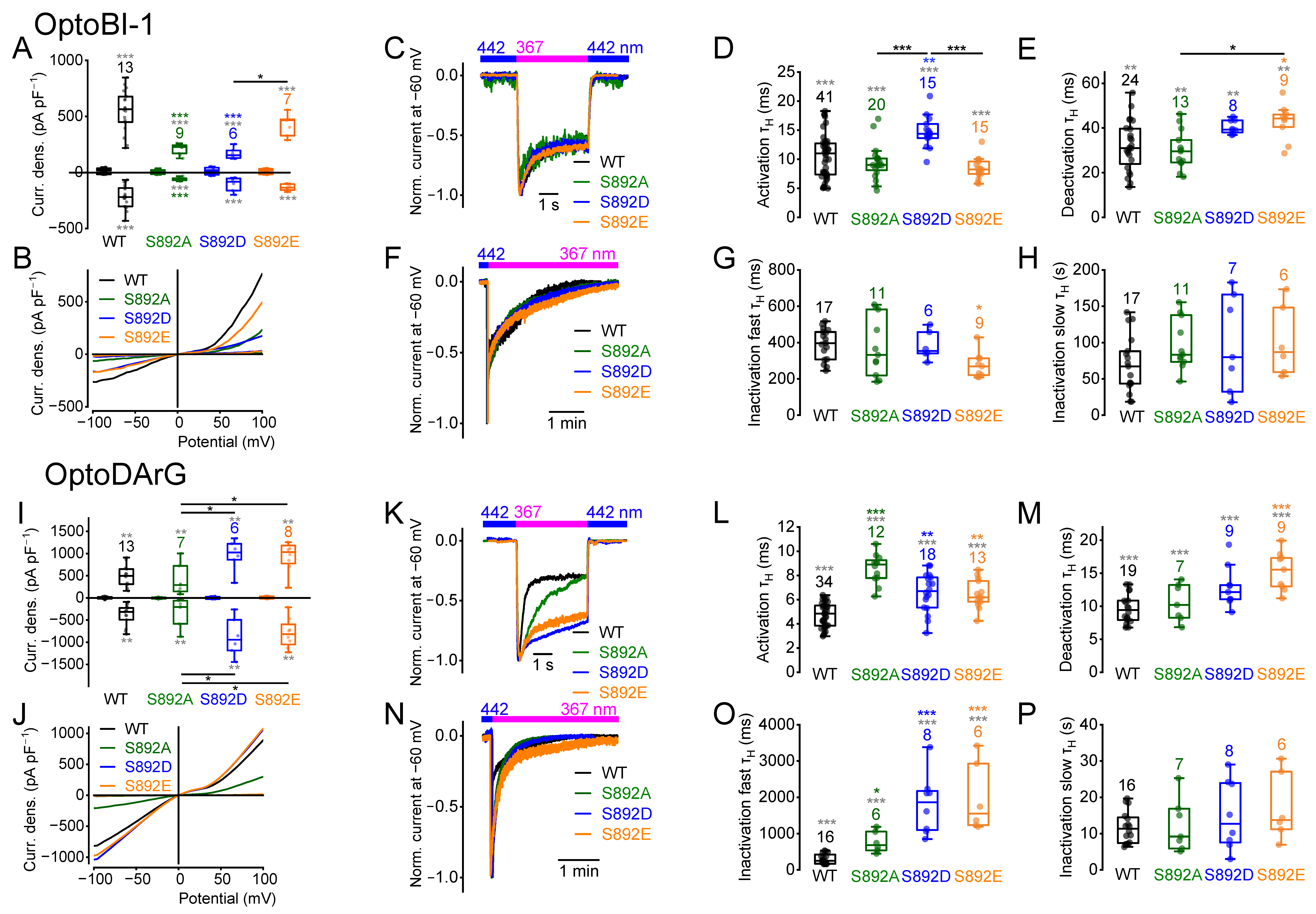 2.4. Amino Acid Exchanges of Serine 892 Influence Current Densities and Current Kinetics
