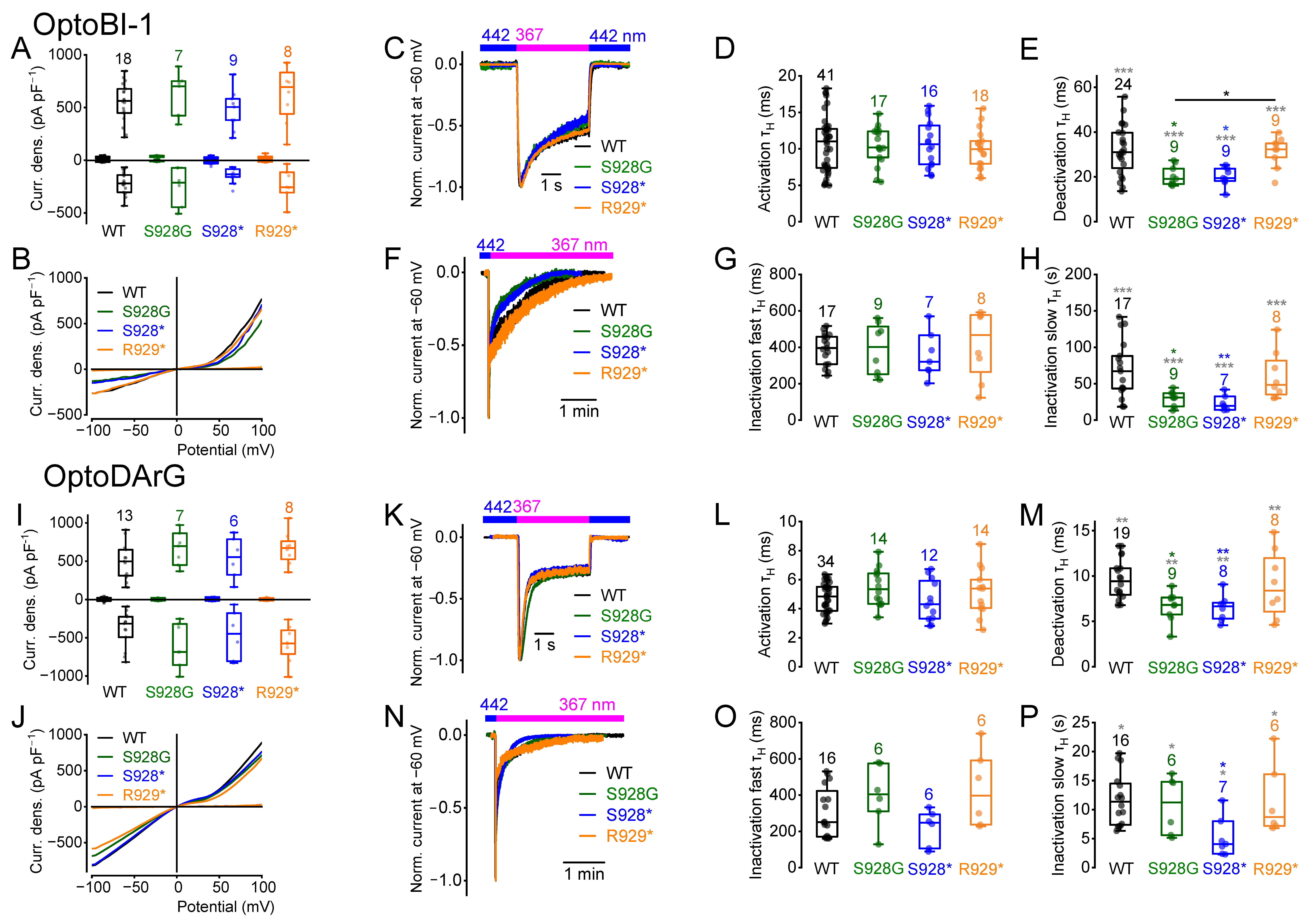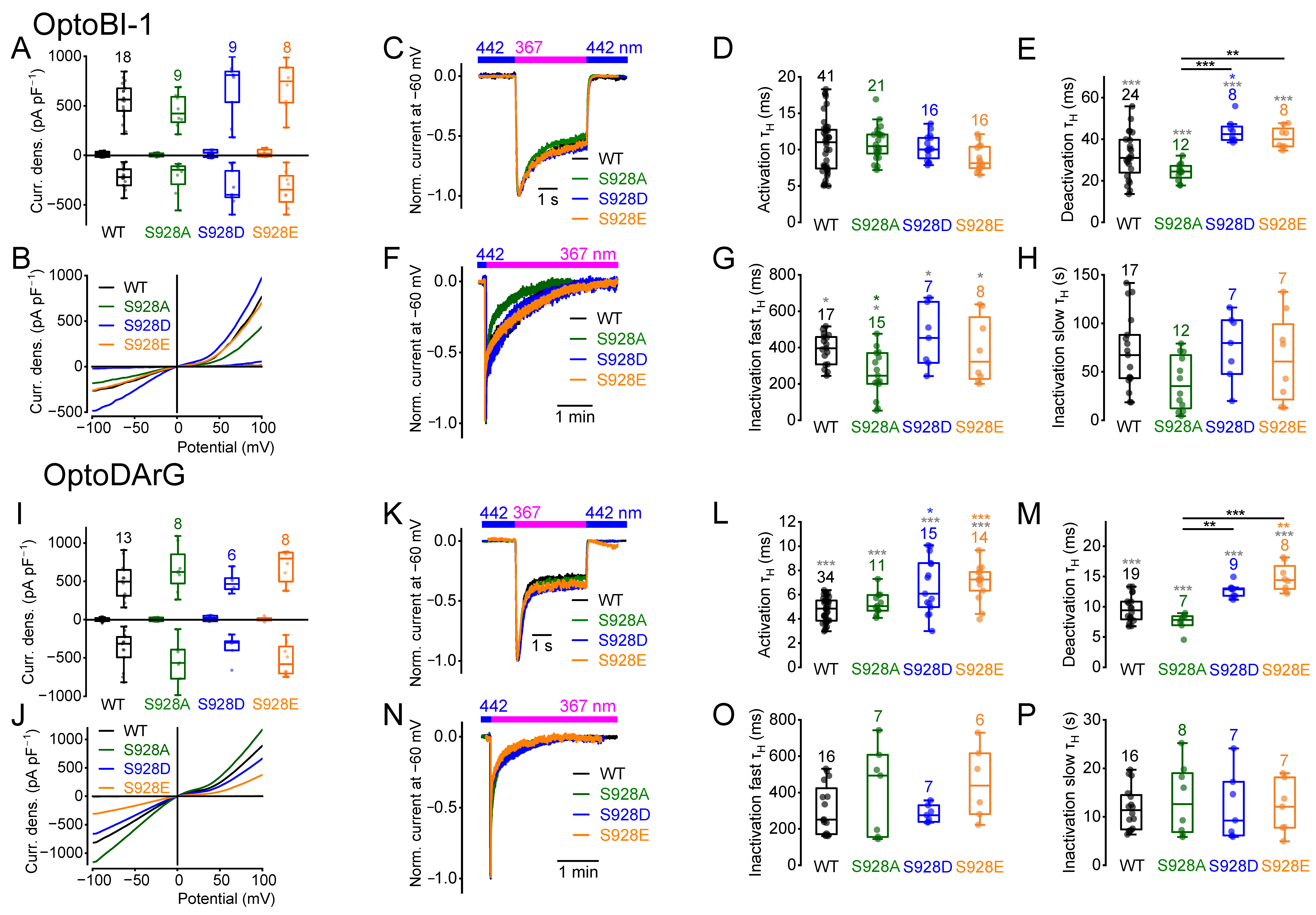 2.5. Amino Acid Exchanges of Serine 928 Cause Changes in the Current Kinetics