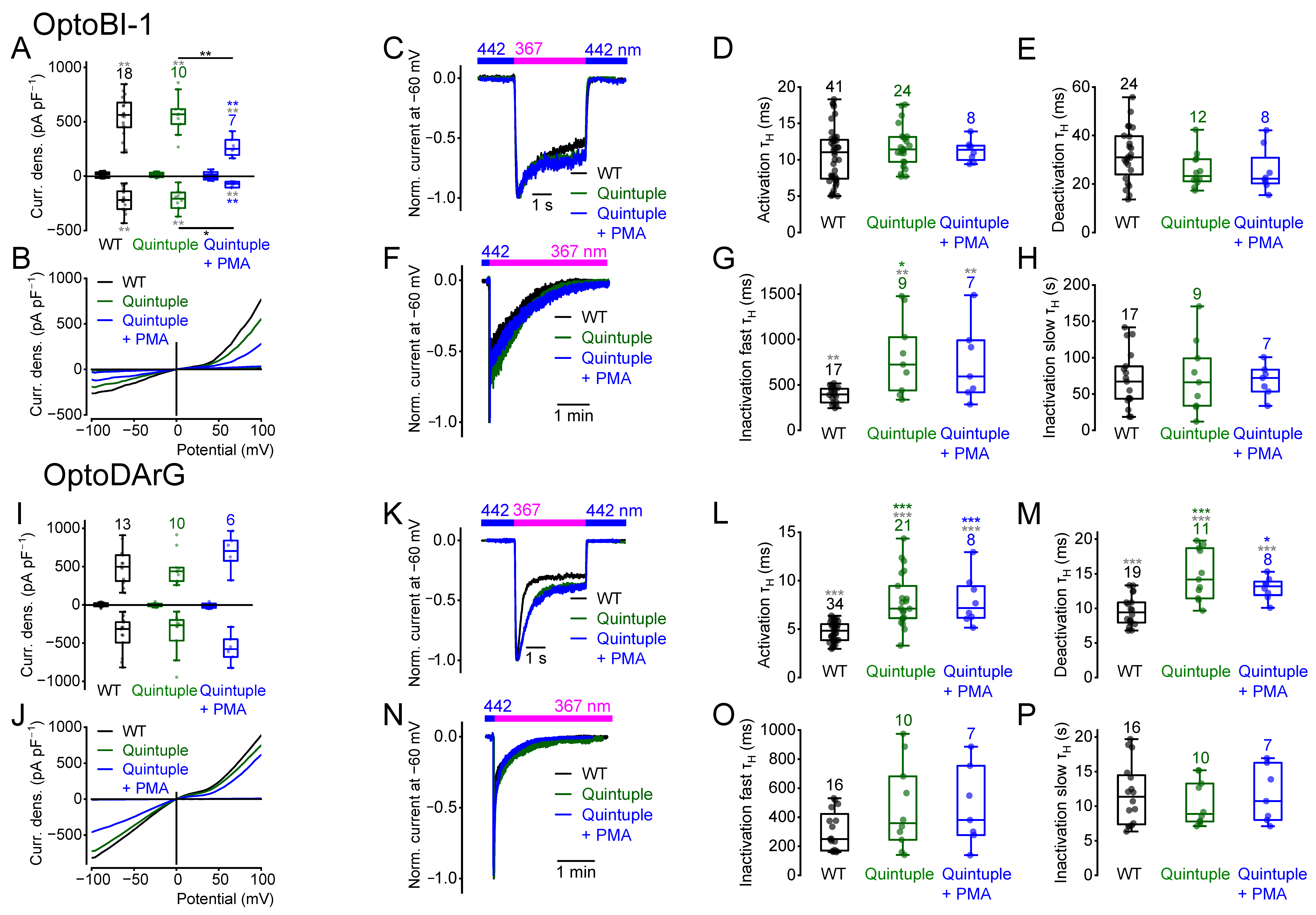2.8. PKC Phosphorylation or Dephosphorylation Alters the Current Kinetics