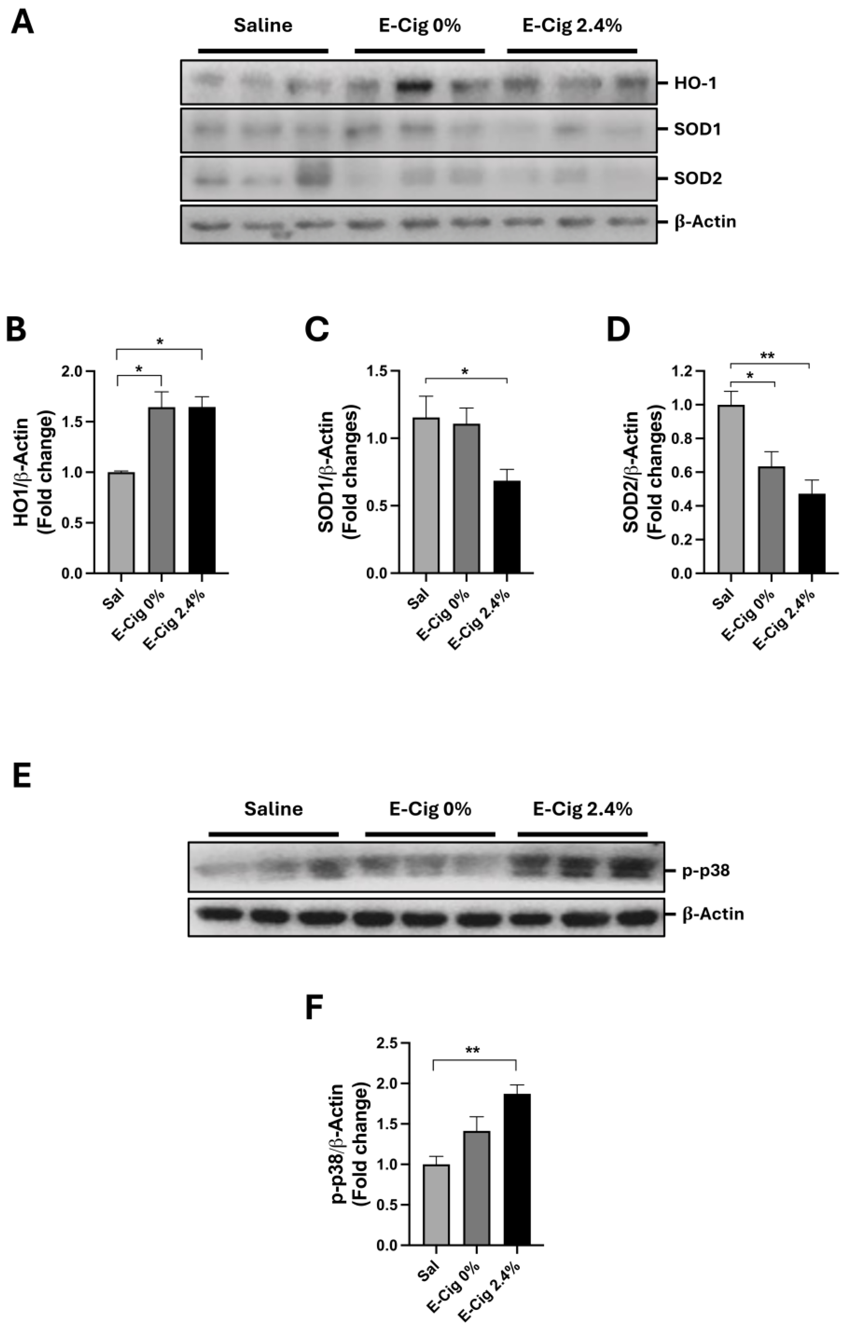 2.3. Effects of E-Cig on Cellular Stress Pathway