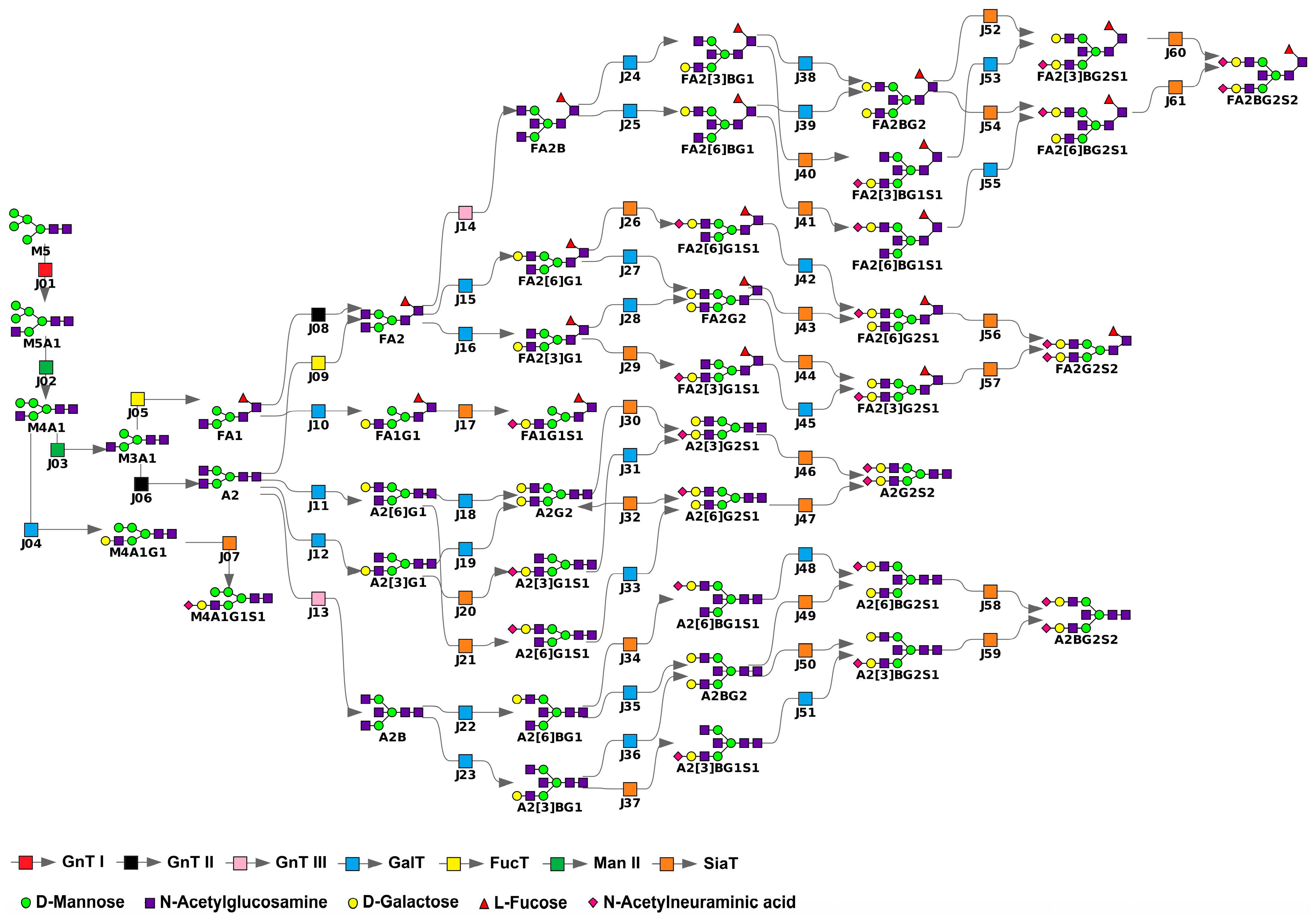 - Bennun, S.V.; Yarema, K.J.; Betenbaugh, M.J.; Krambeck, F.J. Integration of the Transcriptome and Glycome for Identification of Glycan Cell Signatures. PLoS Comput. Biol. 2013, 9, e1002813. [Google Scholar] [CrossRef]