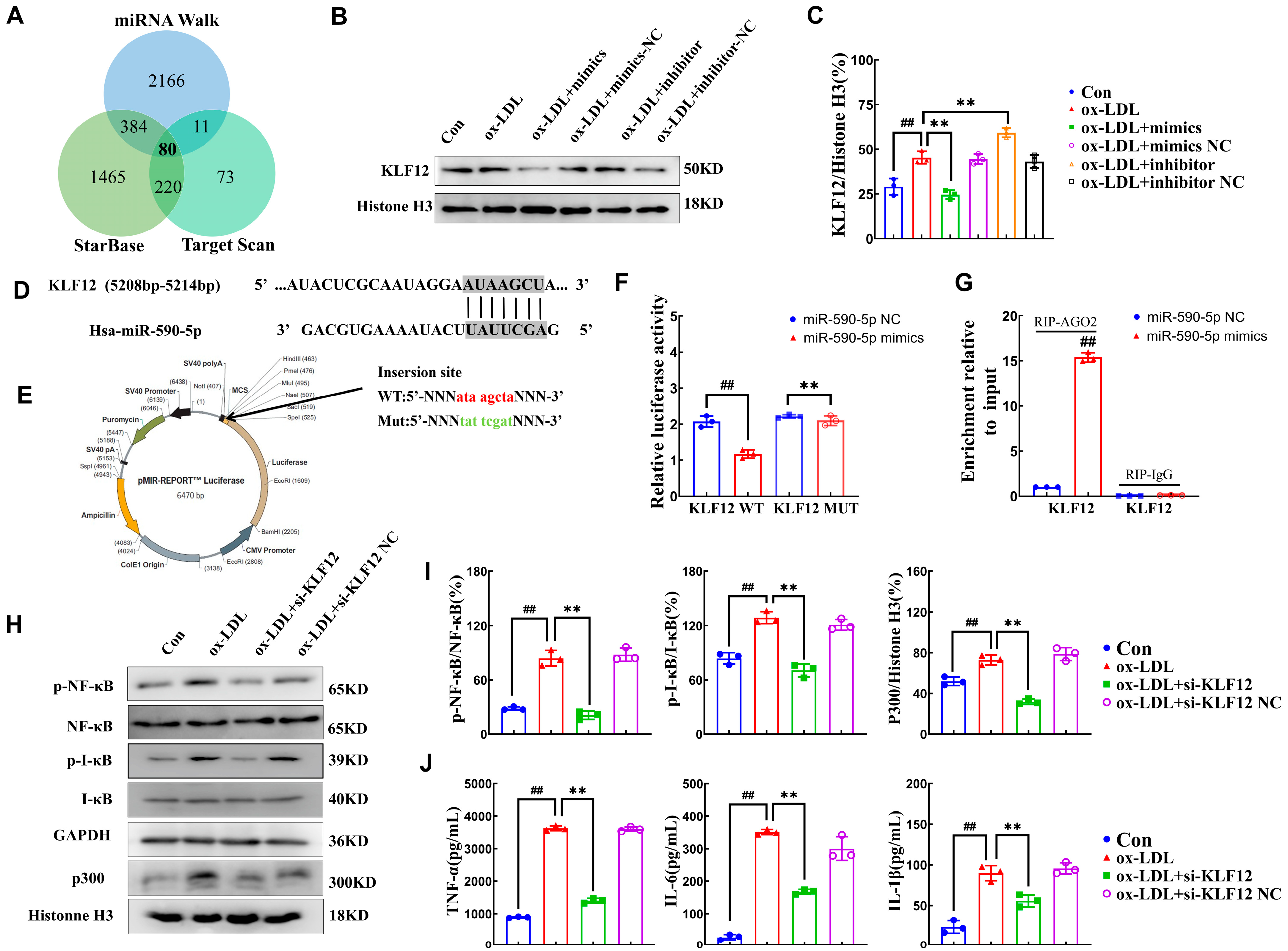 2.3. miR-590-5p Alleviates Inflammatory Responses by Targeting KLF12
