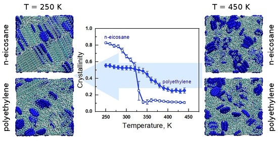 - Anwar, M.; Turci, F.; Schilling, T. Crystallization Mechanism in Melts of Short N-Alkane Chains. J. Chem. Phys. 2013, 139, 214904. [Google Scholar] [CrossRef]