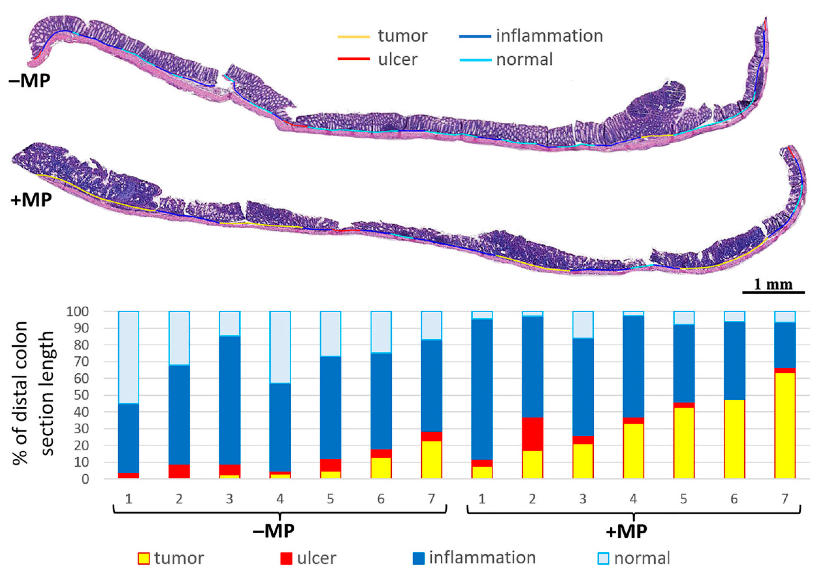 Zolotova N, Kirillova M, Dzhalilova D, Tsvetkov I, Fokichev N, Makarova O. Microplastics’ Impact on the Development of AOM/DSS-Induced Colitis-Associated Colorectal Cancer in Mice. International Journal of Molecular Sciences. 2025; 26(23):11511. https://doi.org/10.3390/ijms262311511