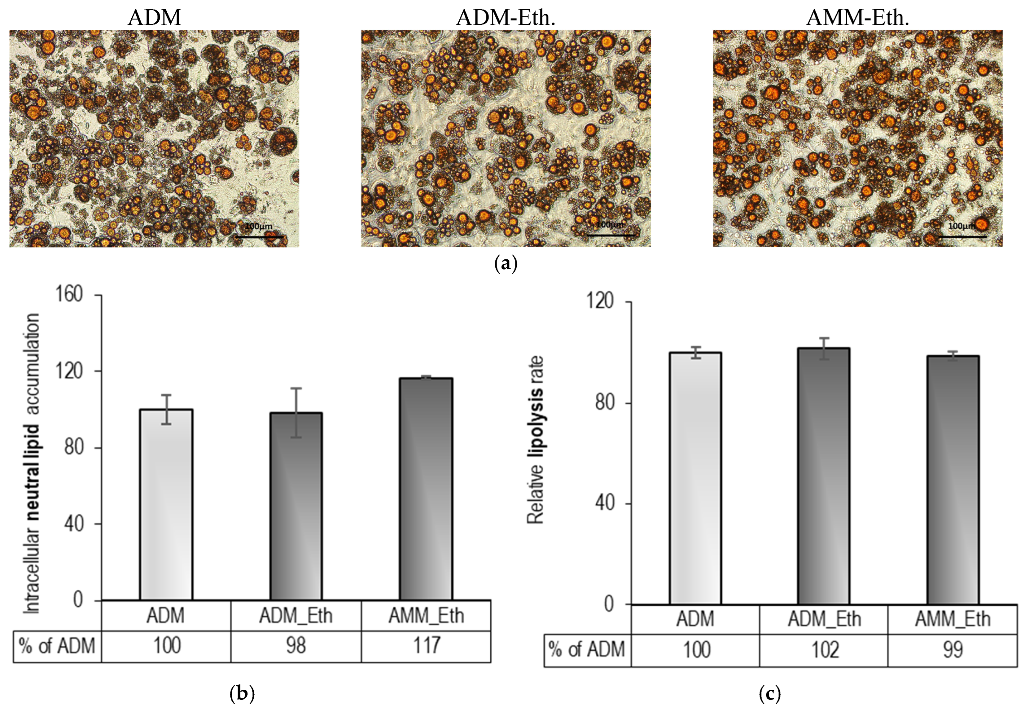 2.1. Pre-Experimental Procedure: Evaluation of 0.05% (v/v) Ethanol Effects on Adipogenesis