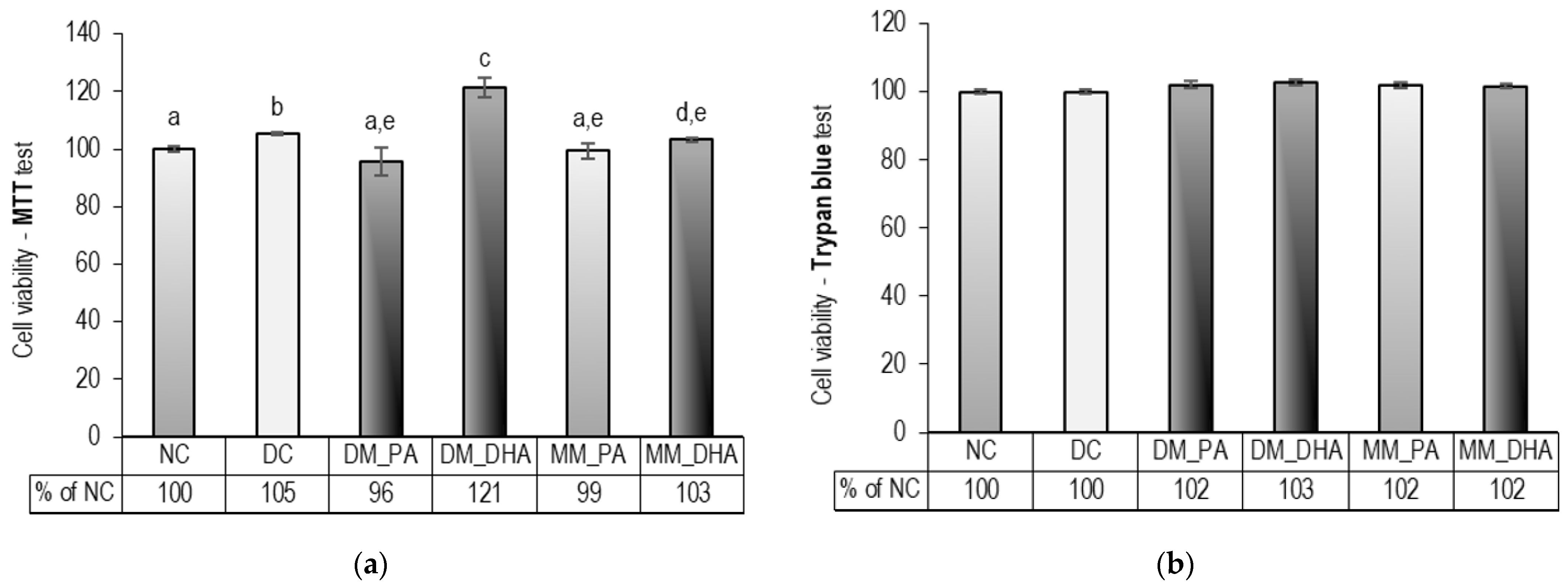 2.2. DHA Influence on the Viability of Immature and Mature 3T3-L1 Adipocytes