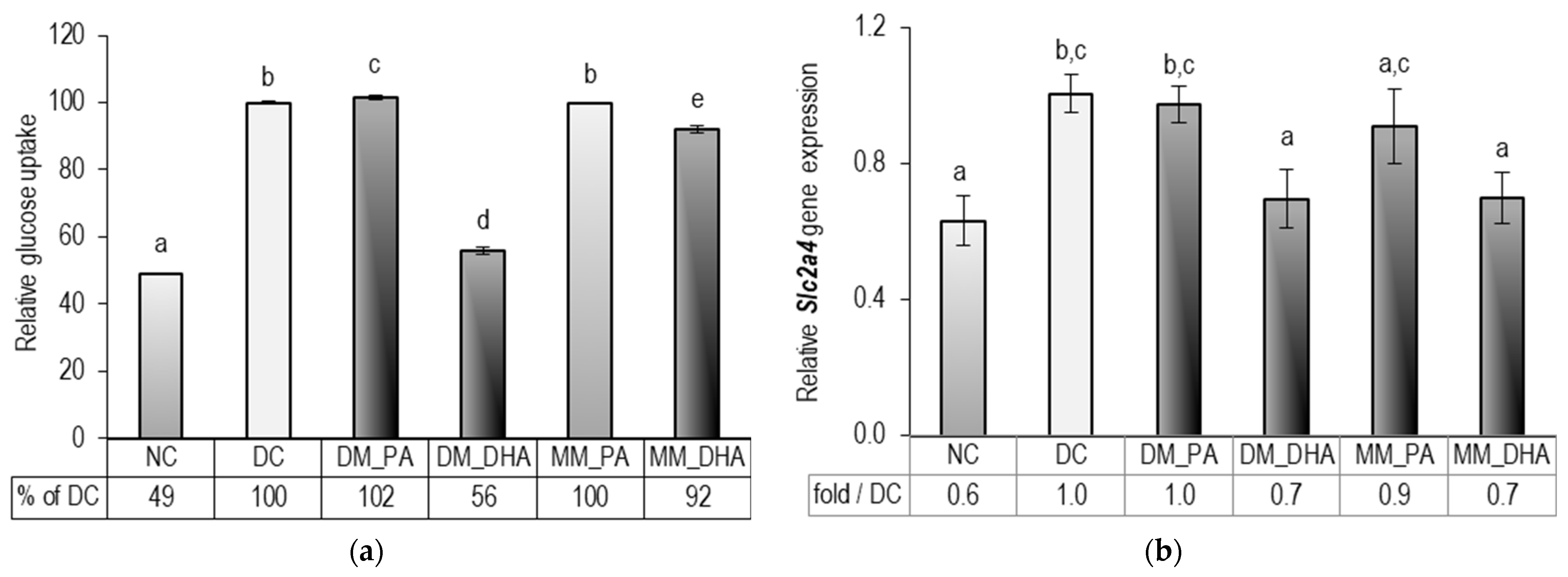 2.4. DHA Impact on Glucose Uptake in Immature and Mature 3T3-L1 Adipocytes