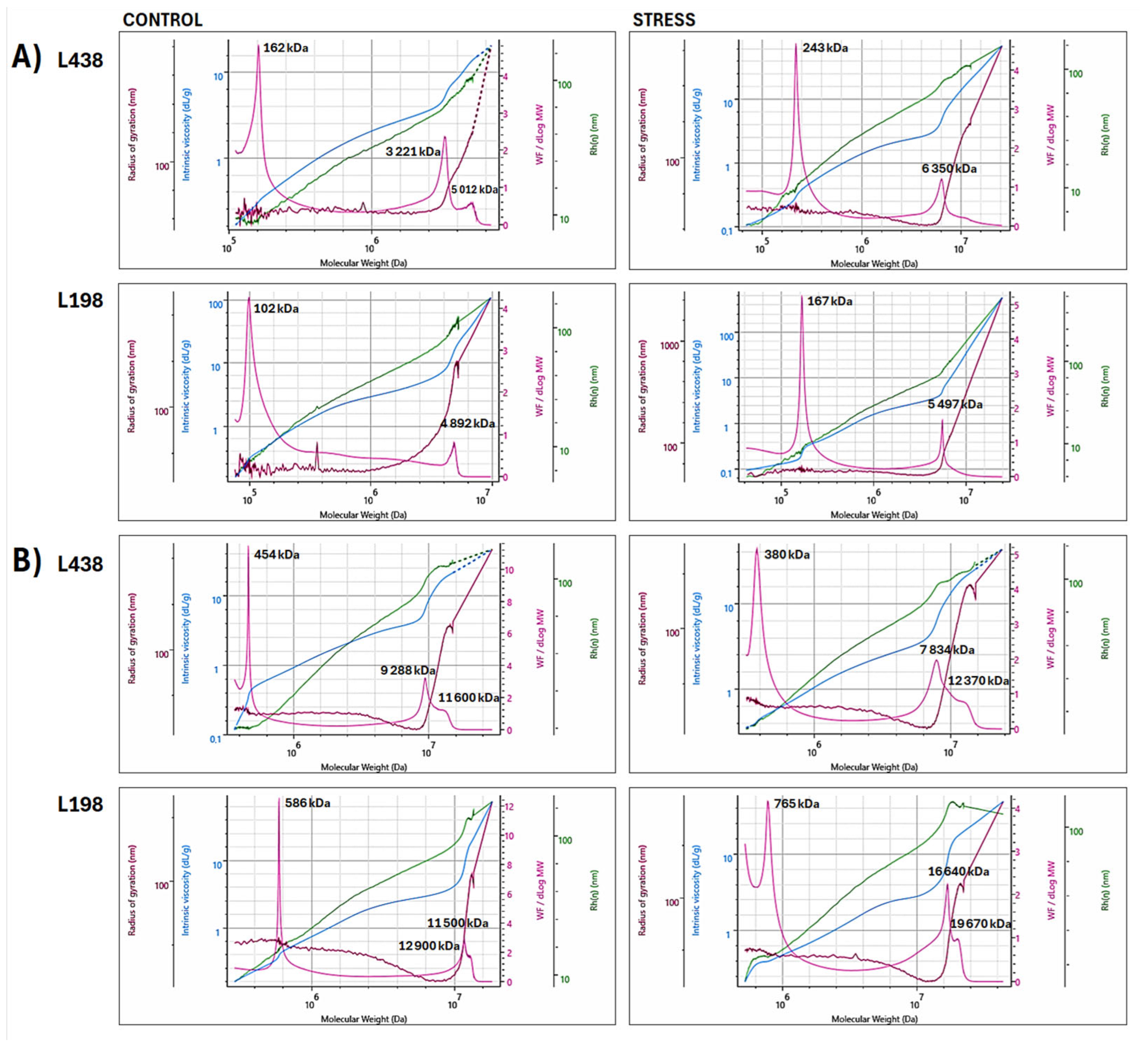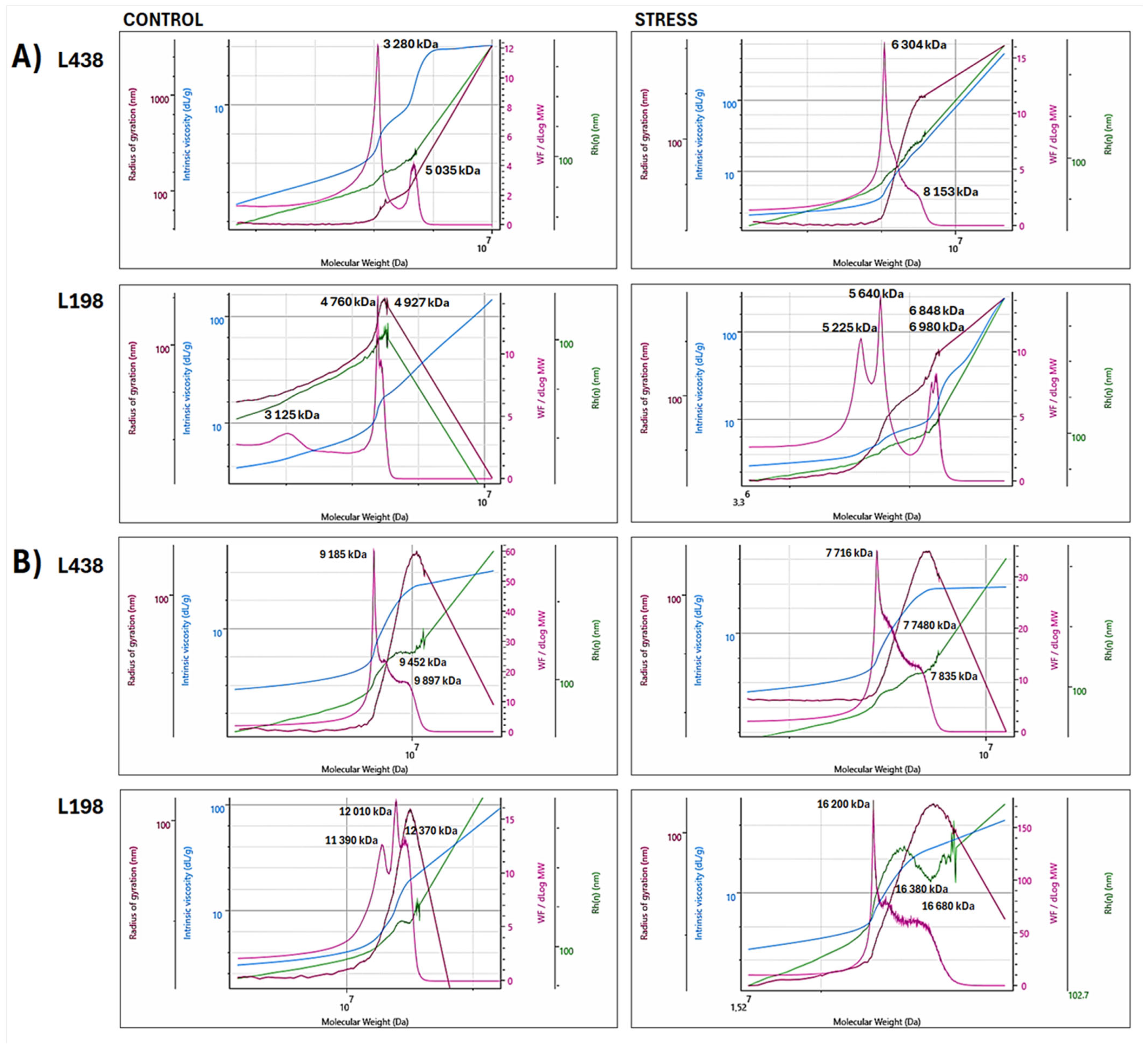 2.4. Changes in Macromolecular Characteristics of High Molar Mass Subunits Caused by Al Stress
