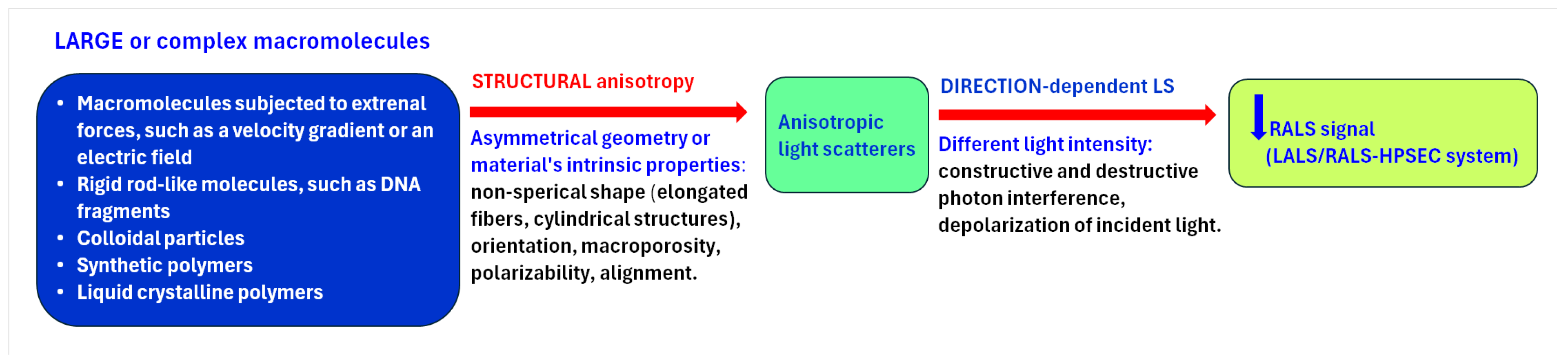 - Nakagaki, M.; Heller, W. Anisotropic Light Scattering by Flowing Flexible Macromolecules. J. Polym. Sci. 1959, 38, 117–131. [Google Scholar] [CrossRef]