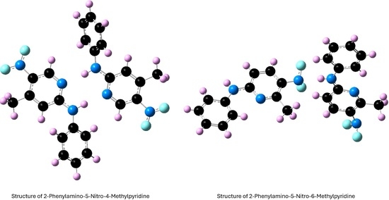 Godlewska, P.; Hanuza, J.; Janczak, J.; Lisiecki, R.; Ropuszyńska-Robak, P.; Dymińska, L.; Sąsiadek, W. Structural and Optical Properties of New 2-Phenylamino-5-nitro-4-methylopyridine and 2-Phenylamino-5-nitro-6-methylpyridine Isomers. Int. J. Mol. Sci. 2025, 26, 11522. https://doi.org/10.3390/ijms262311522