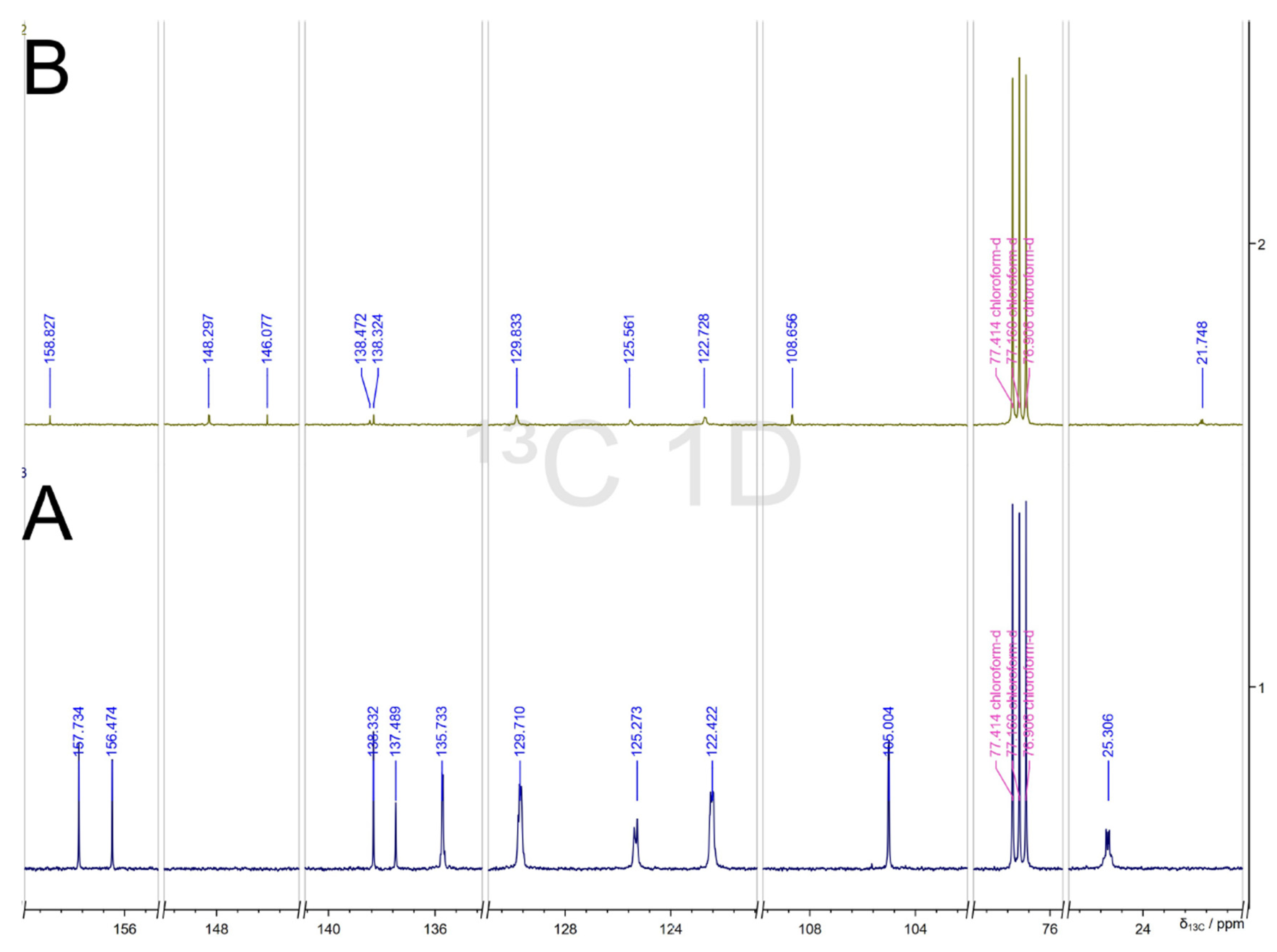- Michalski, J.; Kucharska, E.; Wandas, M.; Hanuza, J.; Waśkowska, A.; Mączka, M.; Talik, Z.; Olejniczak, S.; Potrzebowski, M.J. Crystal Structure, Vibrational and NMR Studies and Chemical Quantum Calculations of 2-phenylazo-5-nitro-6-methyl-pyridine (C12H10N4O2). J. Mol. Struct. 2005, 744–747, 377–392. [Google Scholar] [CrossRef]