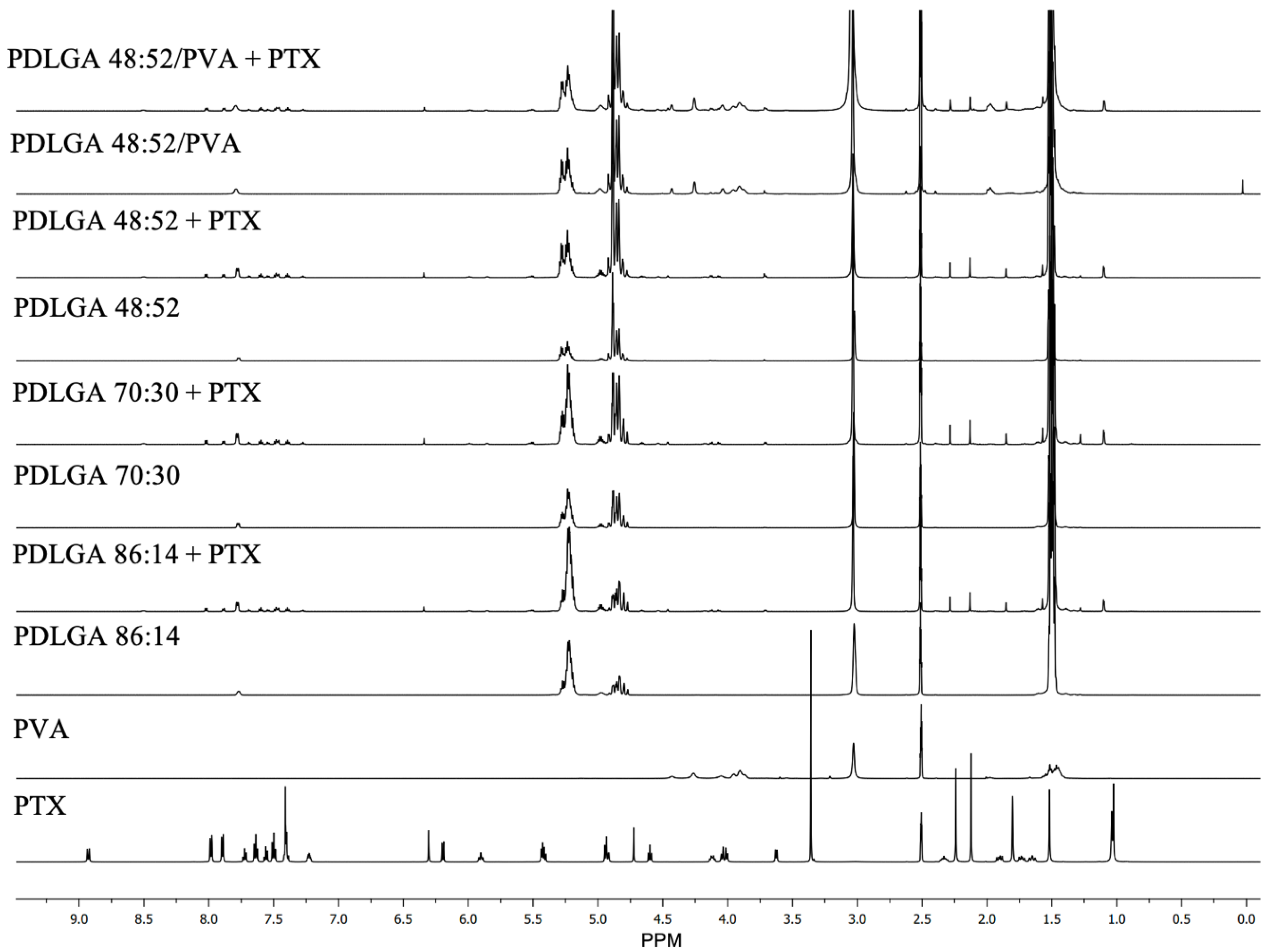 Figure 3). Also, the PTX was successfully incorporated into the nonwovens, as visualized in the NMR spectra (