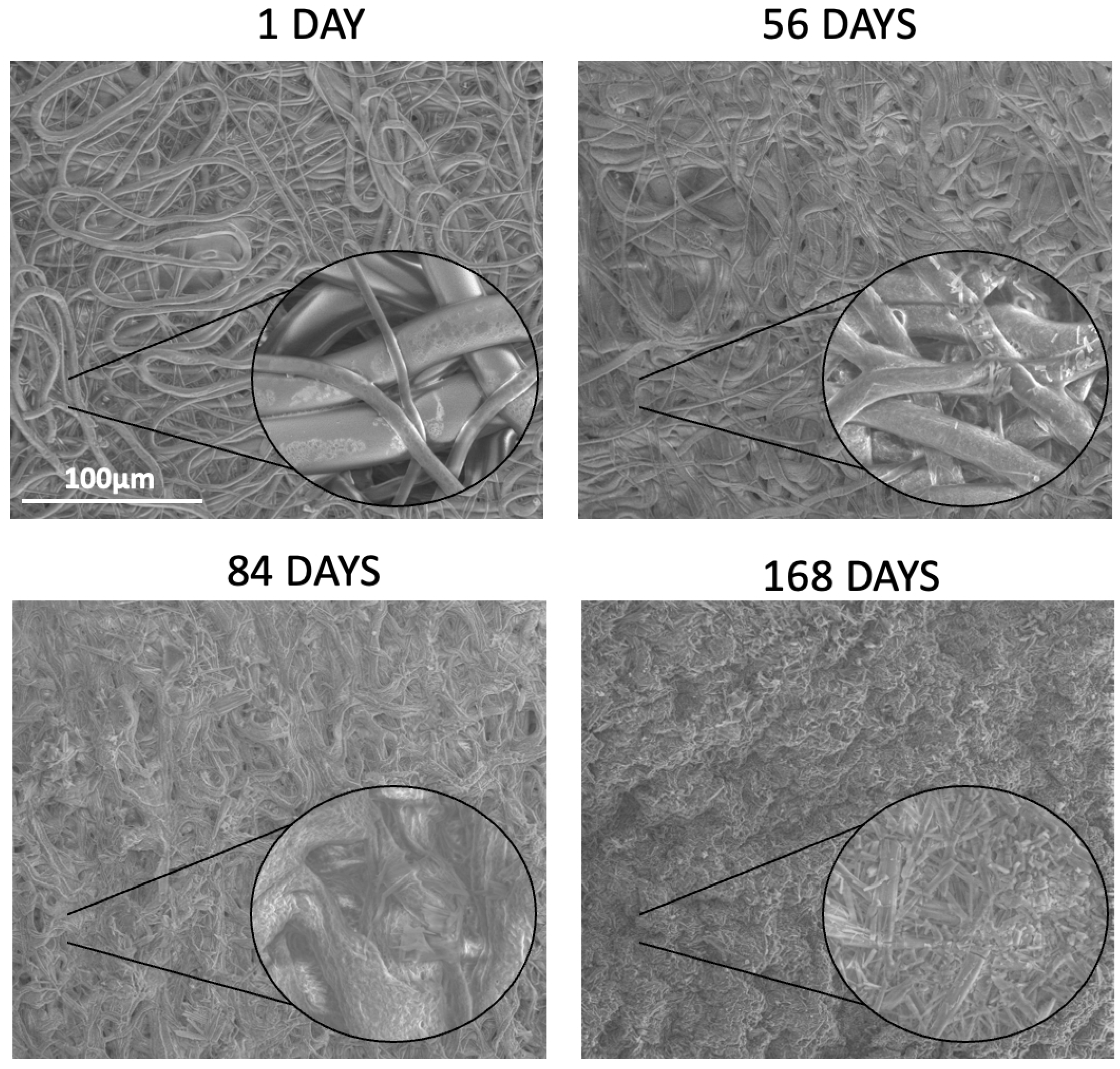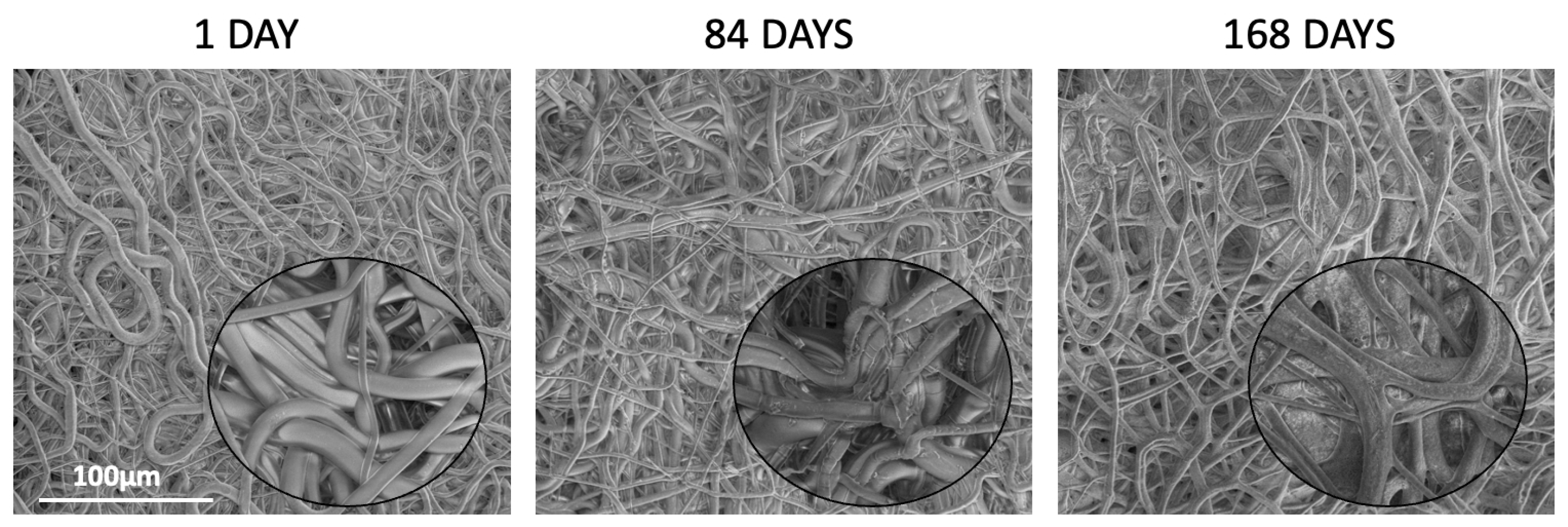 Table 1), and PVA remains in the nonwoven even after 28 days of degradation, which was visualized in GPC chromatograms (