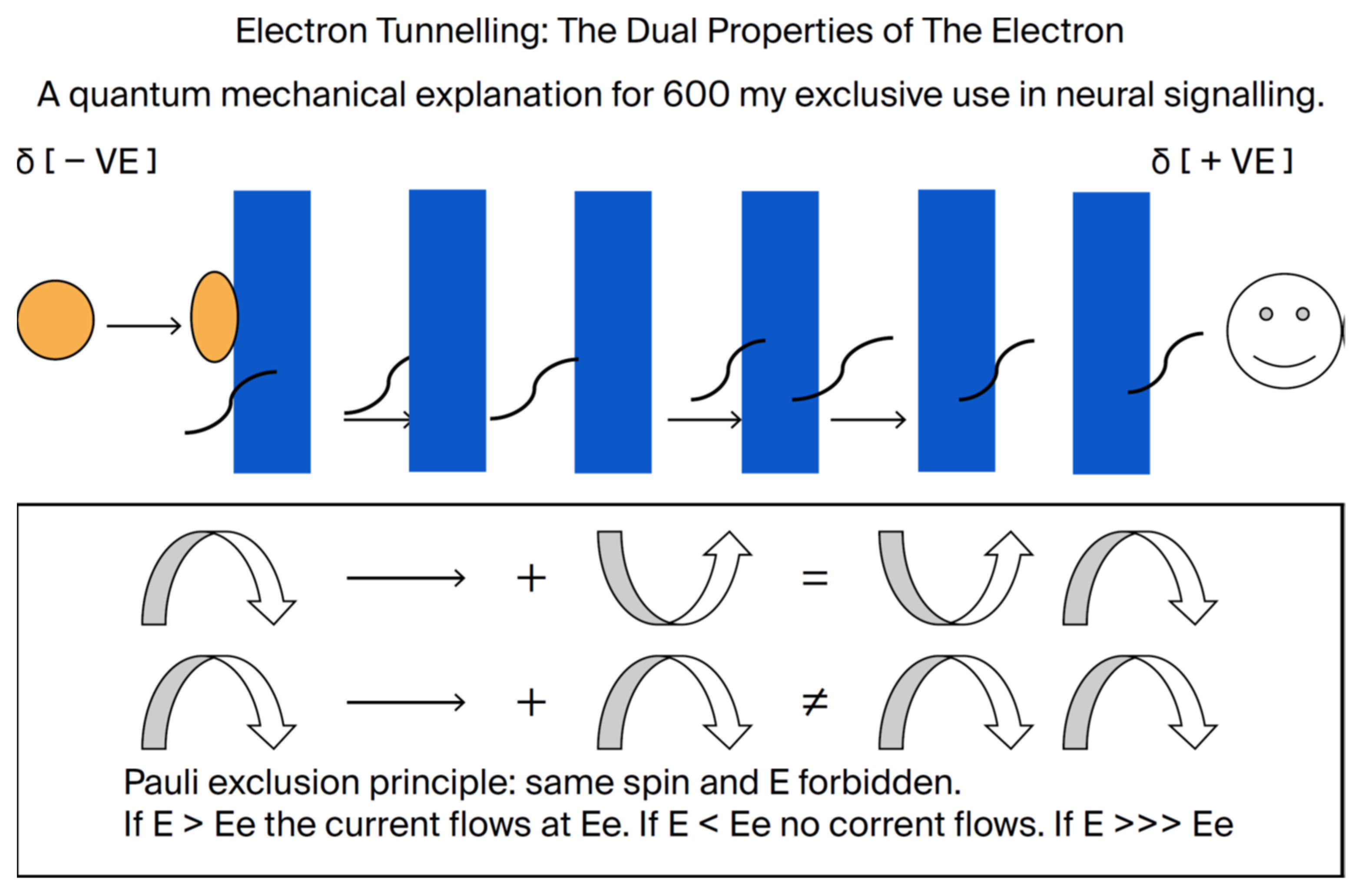 The synapses are under the influence of the resting membrane potential, which is the potential between the interior and exterior of the cell of about 80 to 70 millivolt. Therefore, neural networks can be in a superposition of the state “firing” and “resting”. This concept matches the long-established principle of neuronal action potentials being generated by ionic movements across cellular membranes through changes in protein channels created by the opening and closing of ion gates, with sodium ions moving into and potassium ions moving out of the cell. That creates an electronic difference across the cell membrane, causing the conduction to jump from node to node. With the fastest conduction velocity being 80–120 m/s [