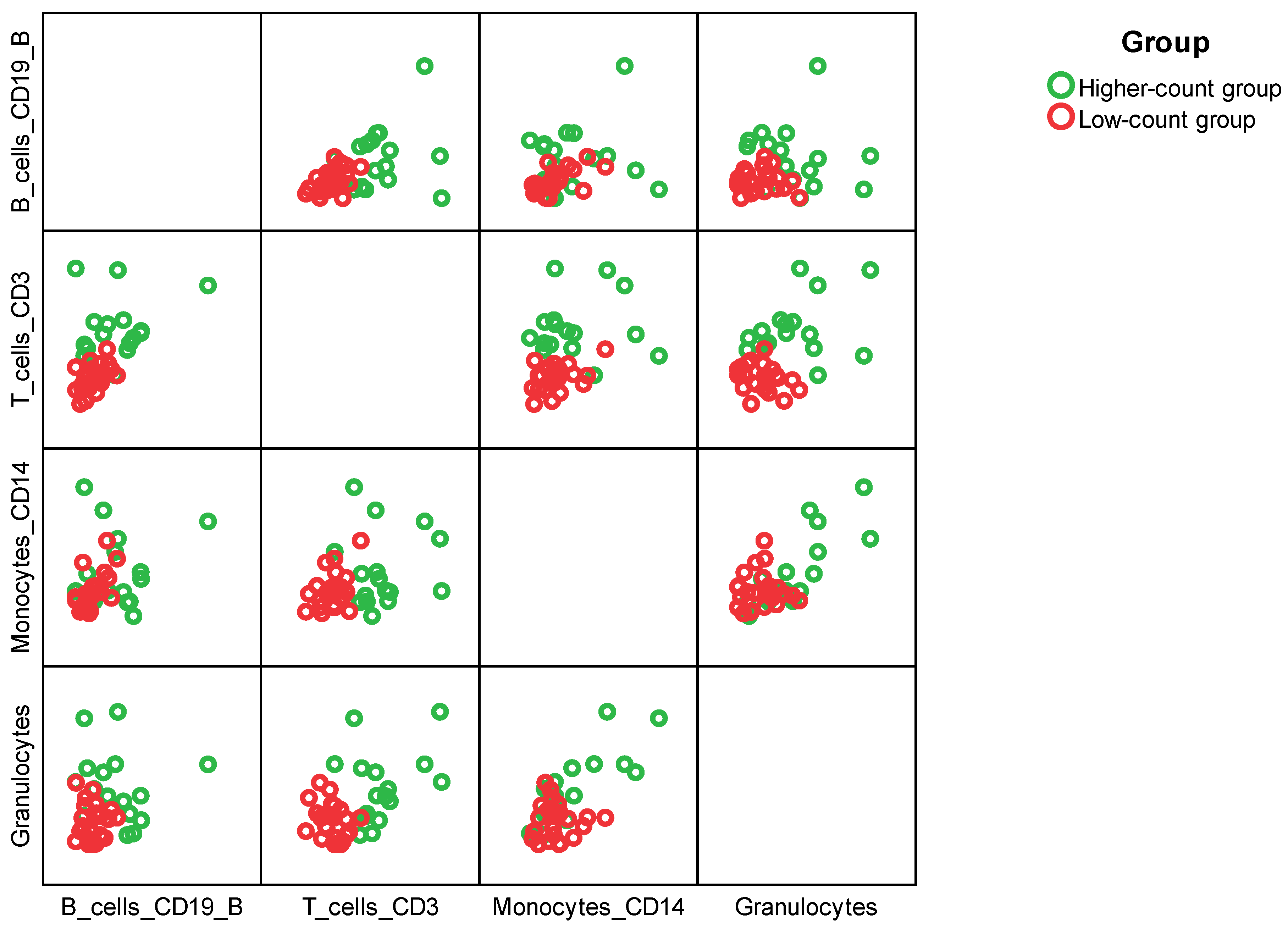 | Higher-count group (16) | 7 (43.8%) | 9 (56.3%) |