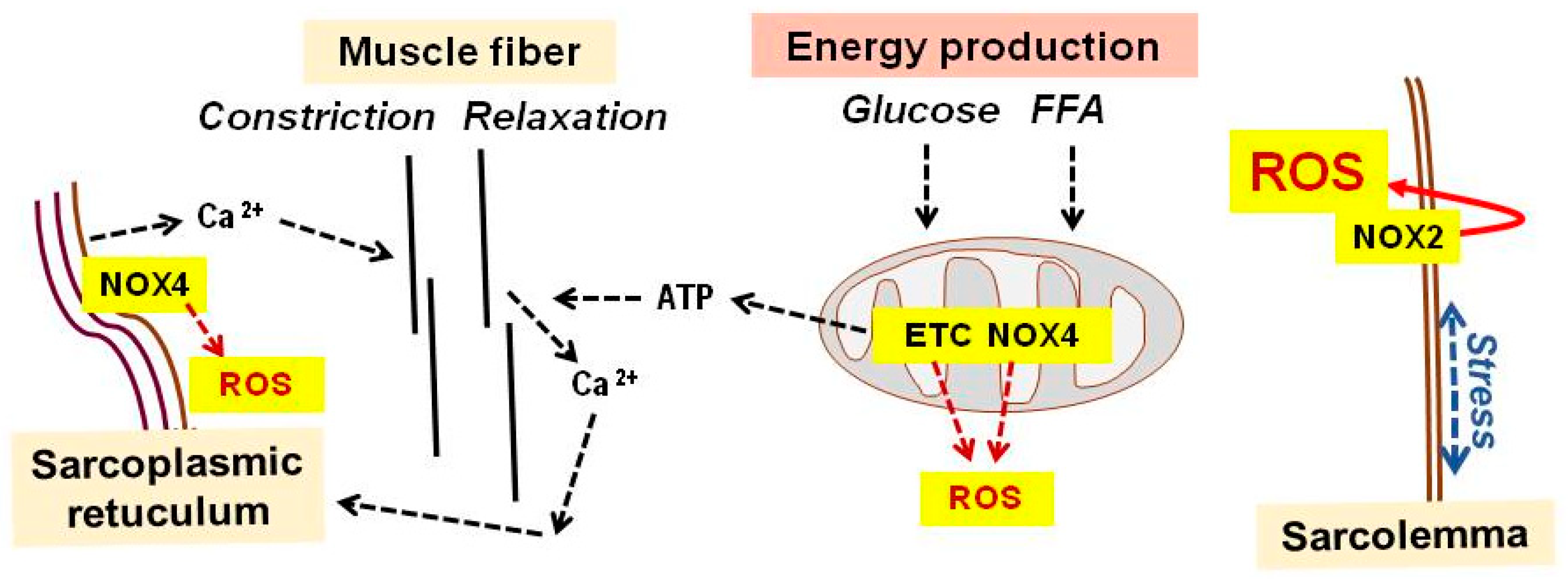 - Meneses-Valdes, R.; Gallero, S.; Henriquez-Olguin, C.; Jensen, T.E. Exploring NADPH oxidases 2 and 4 in cardiac and skeletal muscle adaptations—A cross-tissue comparison. Free Radic. Biol. Med. 2024, 223, 296–305. [Google Scholar] [CrossRef]
