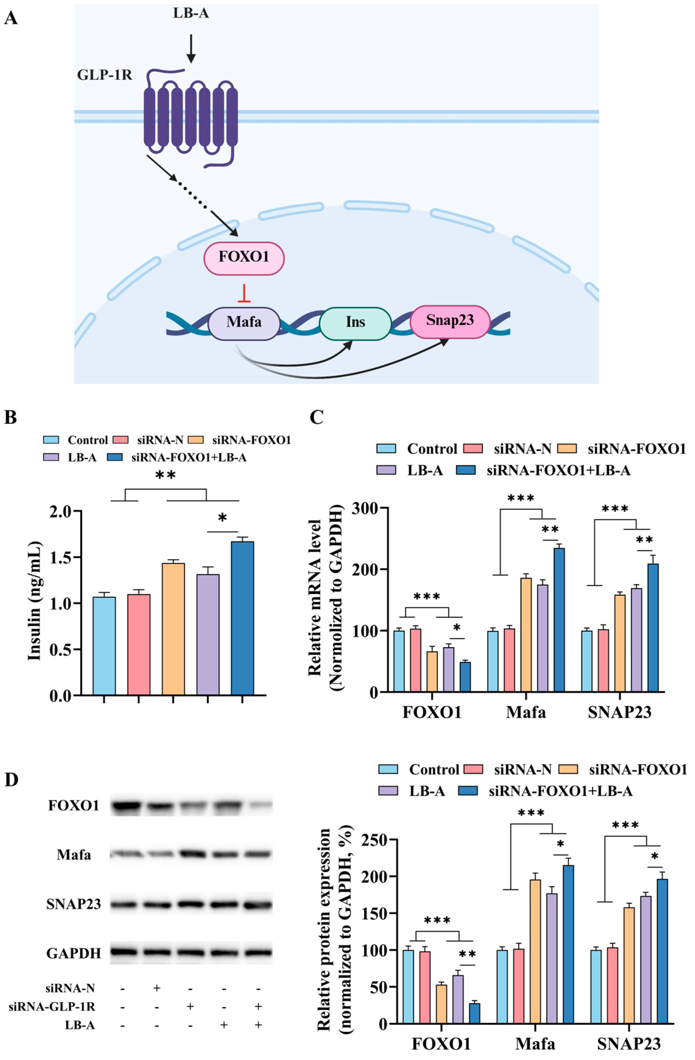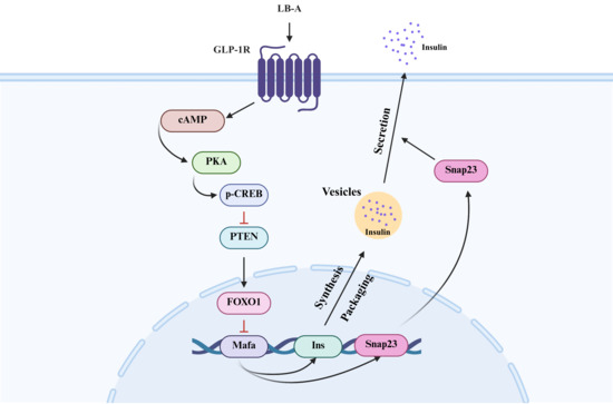 2.5. The Role of FOXO1 in the Promotion of Insulin Secretion by LB-A