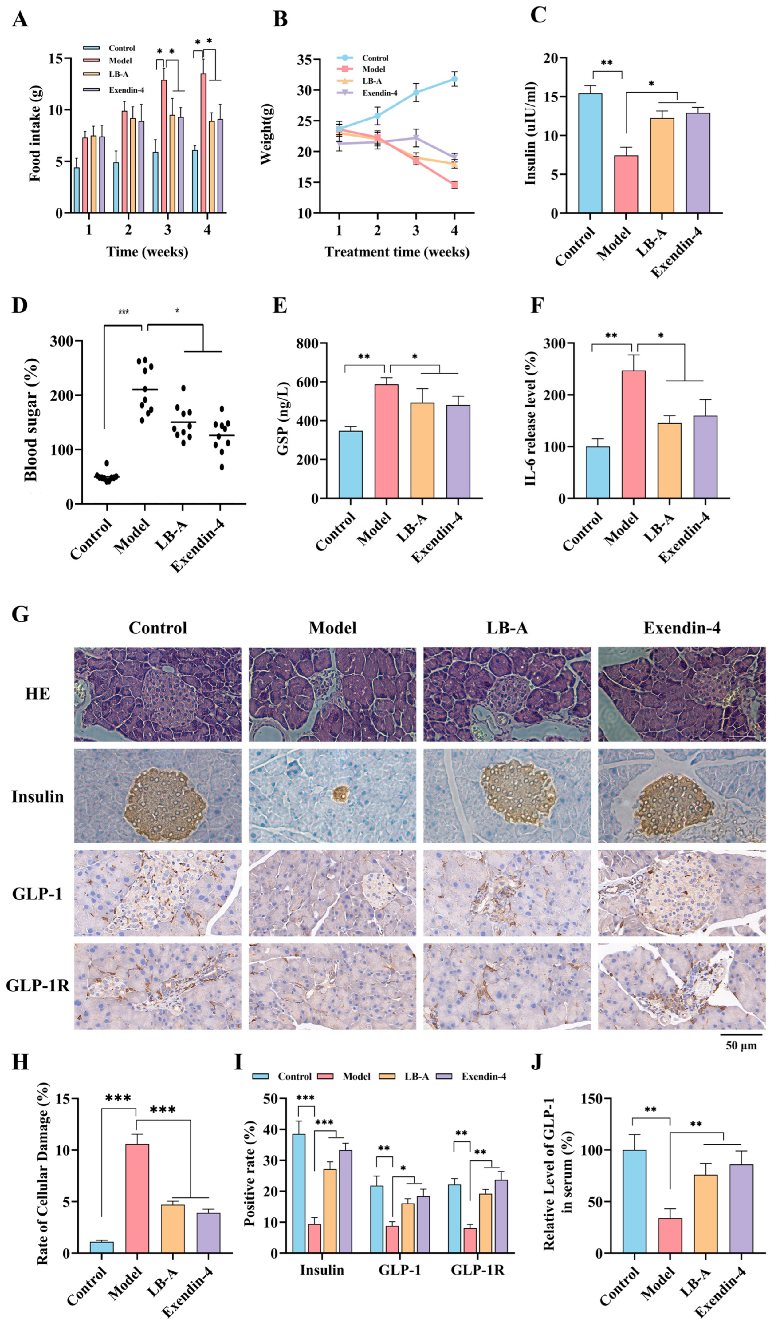 2.2. The Impact of LB-A on Diabetic Mice