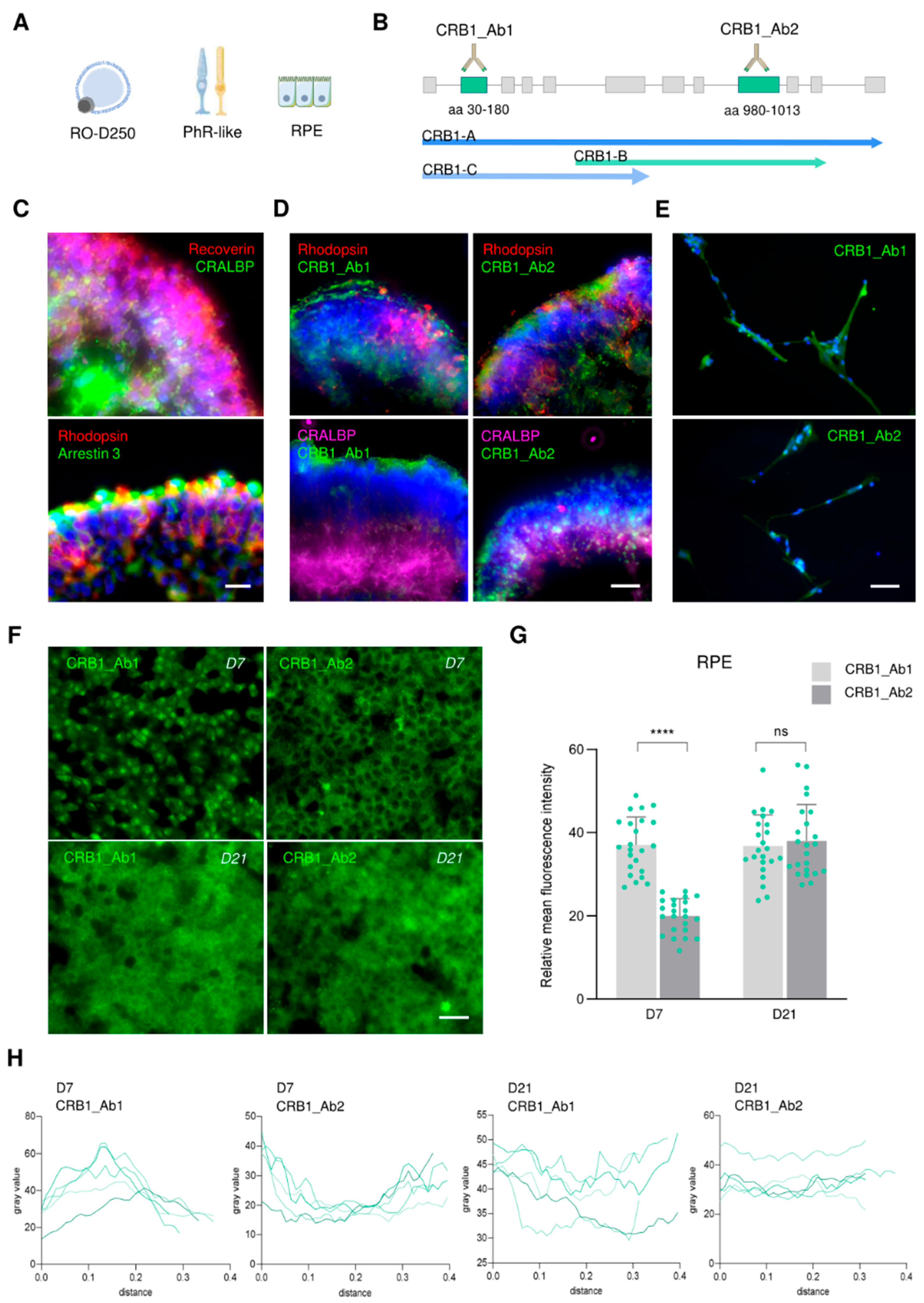 - Wang, Y.; Liang, Y.; Zhou, Y.; Cui, Z.; Gu, J.; Xiong, S.; Chen, J. CRB1 mutations cause structural and molecular defects in patient-derived retinal pigment epithelium cells. Exp. Eye Res. 2025, 257, 110445. [Google Scholar] [CrossRef]