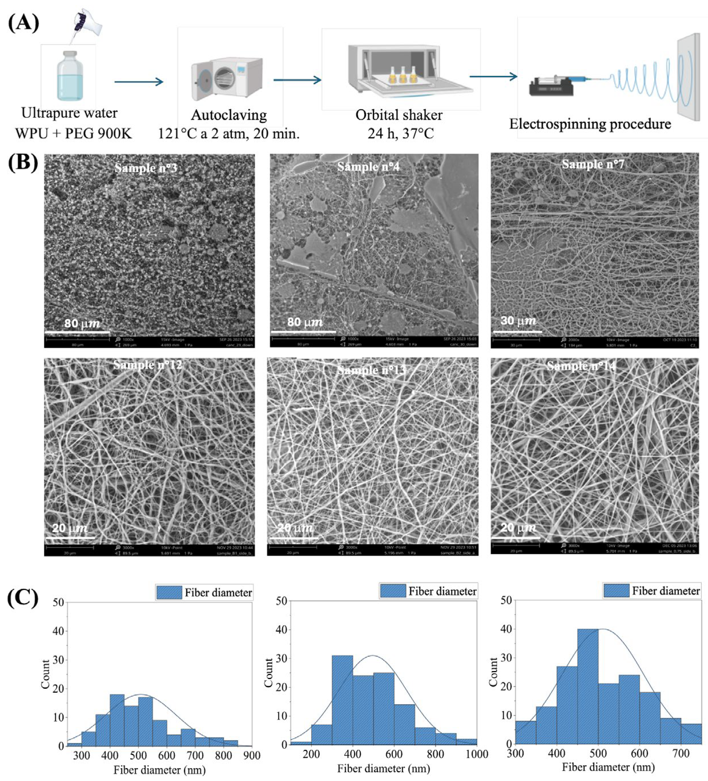 3.4. Fabrication of WPU-Based Nanofibers by Electrospinning and Characterization
