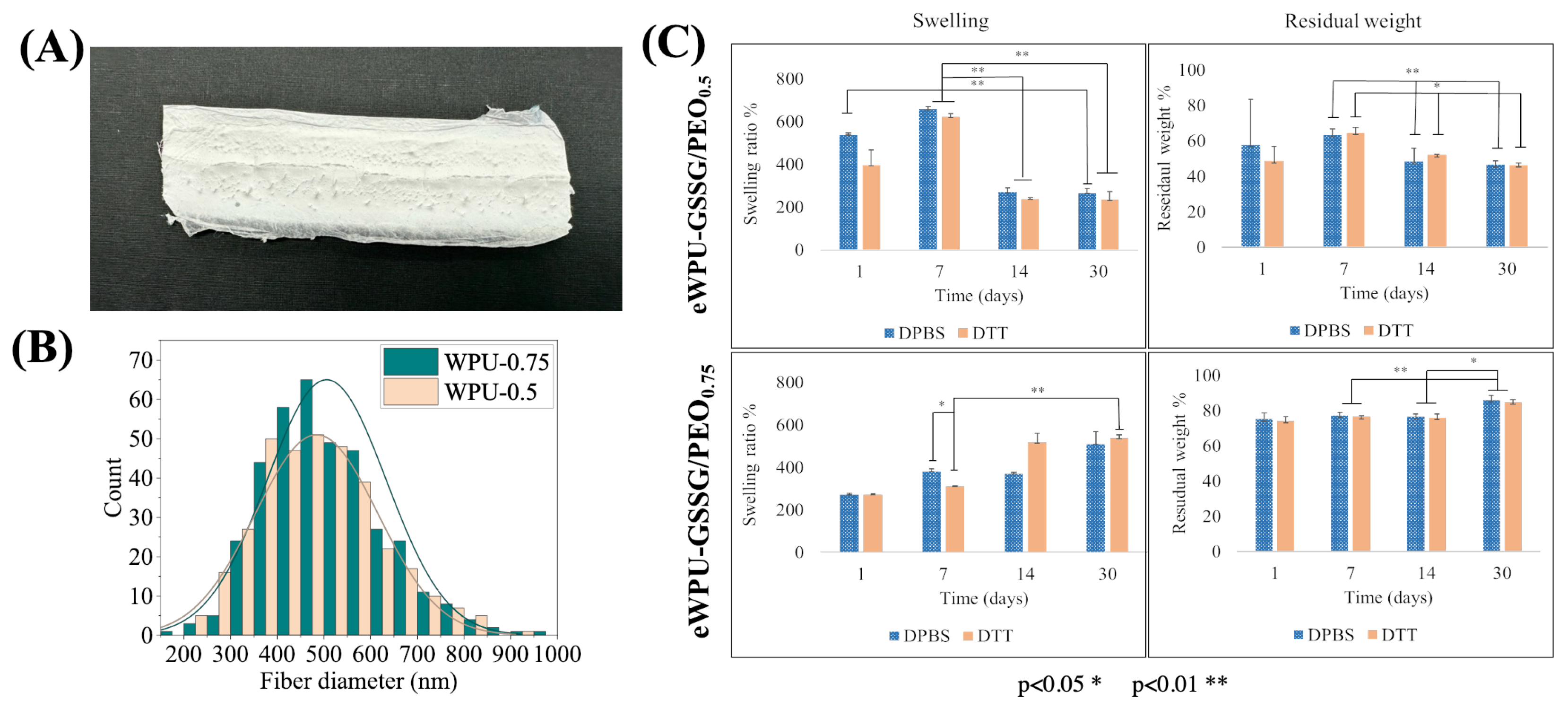 APA StyleAccardo, P., Cancilla, F., Martorana, A., Calascibetta, F., Amico, G., Pitarresi, G., Fiorica, C., Chinnici, C. M., & Palumbo, F. S. (2025). Eco-Friendly Fabrication of Secretome-Loaded, Glutathione-Extended Waterborne Polyurethane Nanofibers. International Journal of Molecular Sciences, 26(23), 11556. https://doi.org/10.3390/ijms262311556
