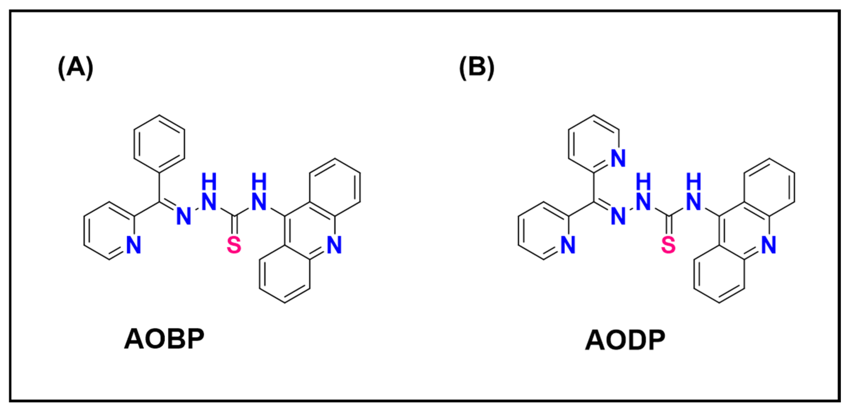 - Kaya, B.; Smith, H.; Chen, Y.; Azad, M.G.; Russell, T.M.; Richardson, V.; Bernhardt, P.V.; Dharmasivam, M.; Richardson, D.R. Targeting lysosomes by design: Novel N-acridine thiosemicarbazones that enable direct detection of intracellular drug localization and overcome P-glycoprotein (Pgp)-mediated resistance. Chem. Sci. 2024, 15, 15109–15124. [Google Scholar] [CrossRef]