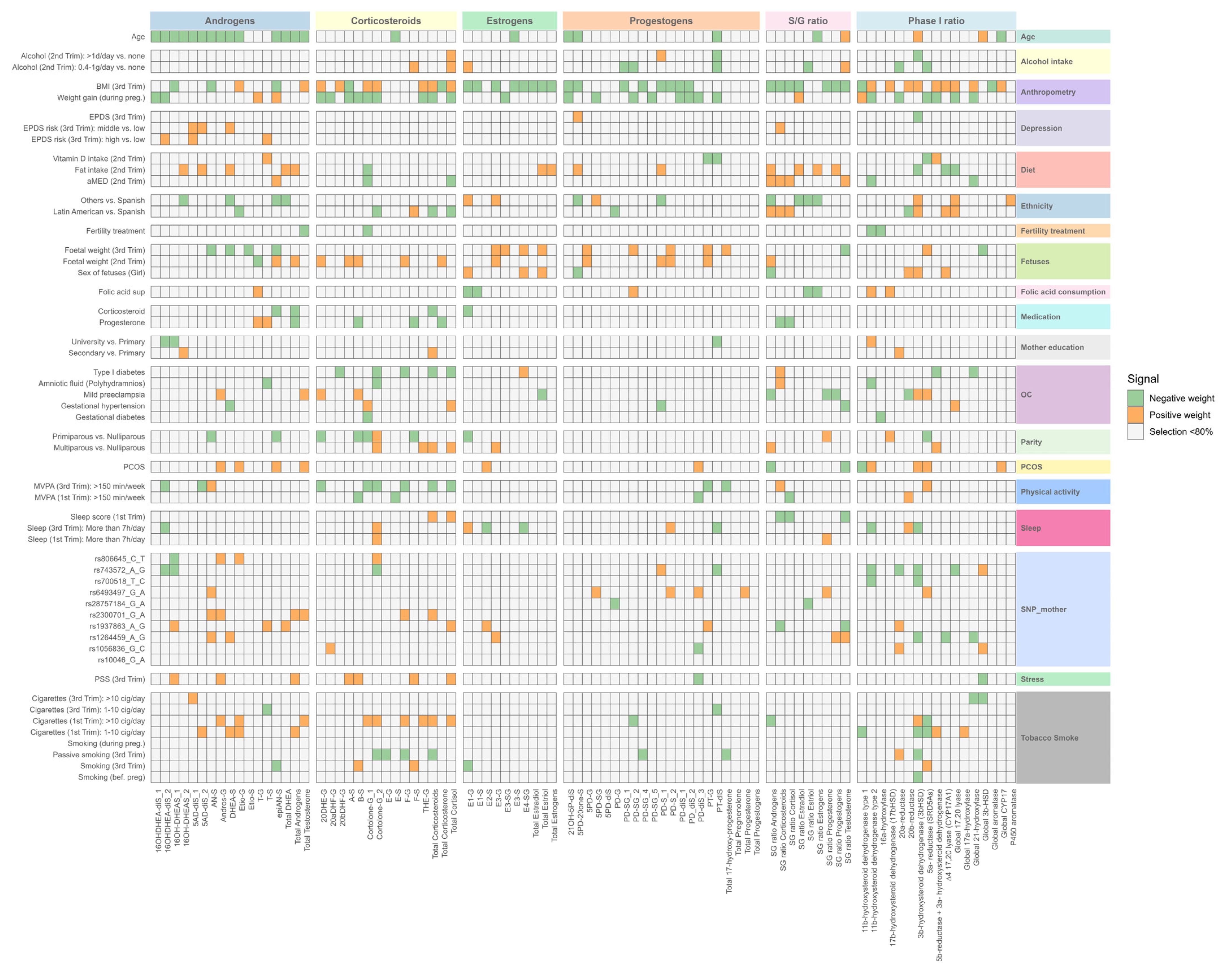 2.3. Main Determinant Selection of the SH Metabolome (BiSC): ExWAS and ENET Analyses