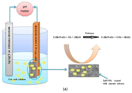- Ali, S.M.U.; Ibupoto, Z.H.; Kashif, M.; Hashim, U.; Willander, M. A Potentiometric Indirect Uric Acid Sensor Based on ZnO Nanoflakes and Immobilized Uricase. Sensors 2012, 12, 2787–2797. [Google Scholar] [CrossRef]
