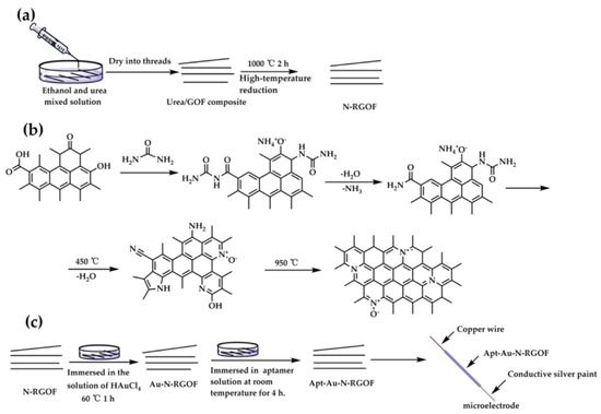 Preparation of N-doped reduced graphene fiber and microelectrode: (a) fiber prepared by wet spinning method; (b) nitrogen doping mechanism of urea; (c) preparation of microelectrode [56].