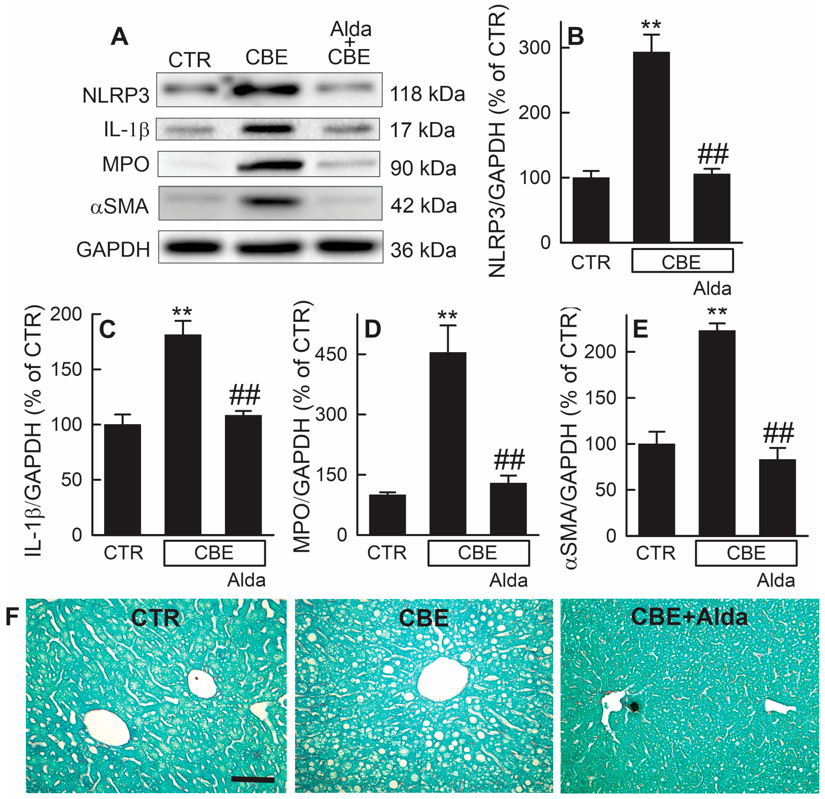 - Wimborne, H.J.; Takemoto, K.; Woster, P.M.; Rockey, D.C.; Lemasters, J.J.; Zhong, Z. Aldehyde dehydrogenase-2 activation by Alda-1 decreases necrosis and fibrosis after bile duct ligation in mice. Free Radic. Biol. Med. 2019, 145, 136–145. [Google Scholar] [CrossRef]