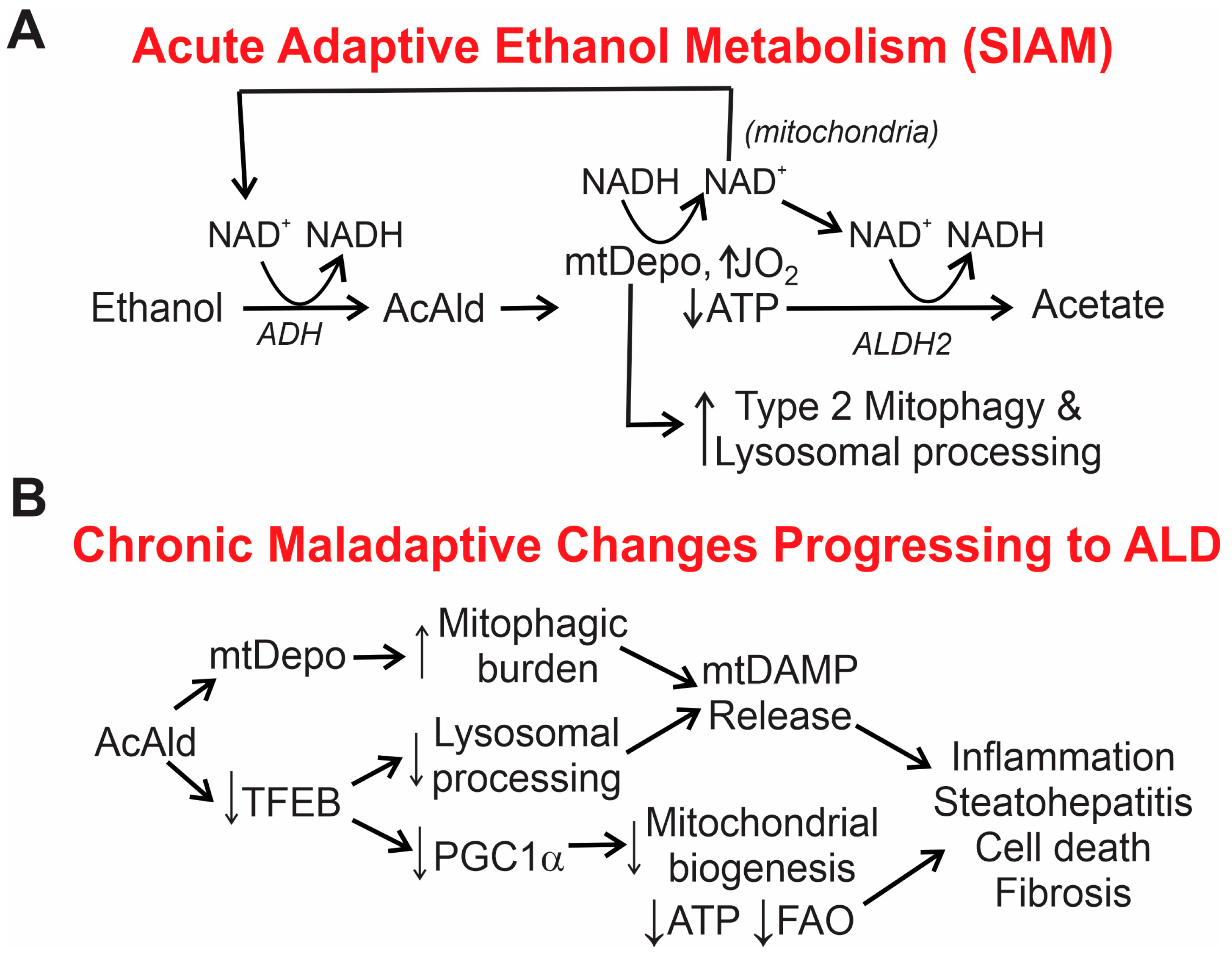 - Zhong, Z.; Lemasters, J.J. A Unifying Hypothesis Linking Hepatic Adaptations for Ethanol Metabolism to the Proinflammatory and Profibrotic Events of Alcoholic Liver Disease. Alcohol. Clin. Exp. Res. 2018, 42, 2072–2089. [Google Scholar] [CrossRef]