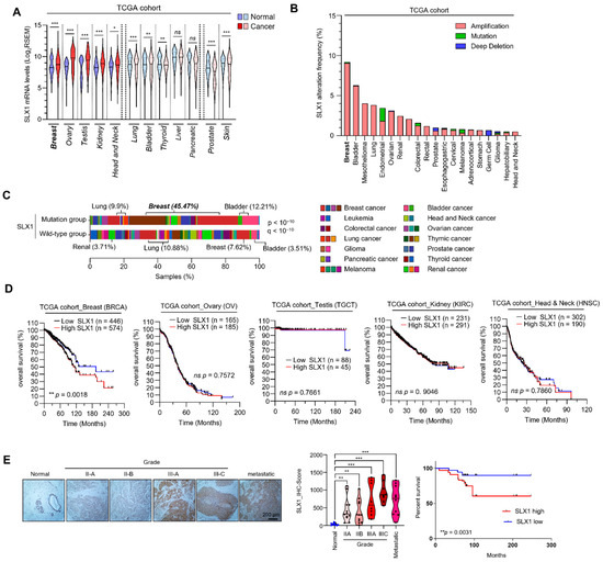 2.1. SLX1 Is Overexpressed in Breast Cancer, Particularly in Those with Poor Prognosis