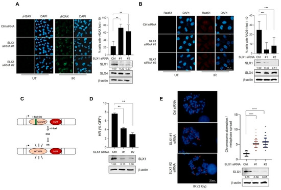 2.2. SLX1 Promotes Homologous Recombination Repair of DNA Double-Strand Breaks