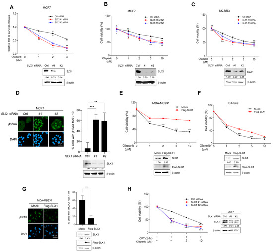 2.4. SLX1 Modulates Sensitivity to Olaparib in Breast Cancer Cells