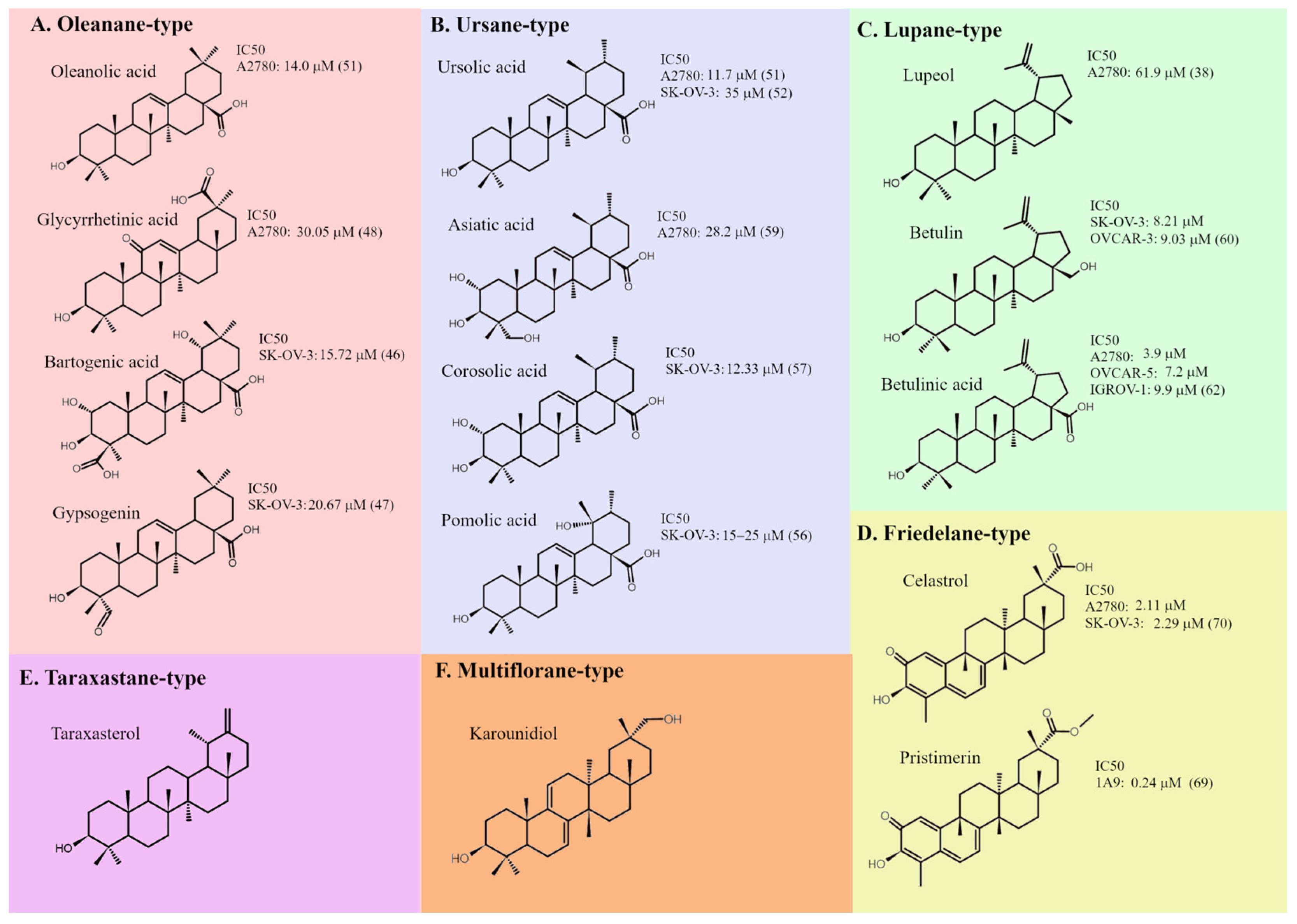 3. Main Types of Pentacyclic Triterpenoids and Their Effects on Ovarian Cancer Cells