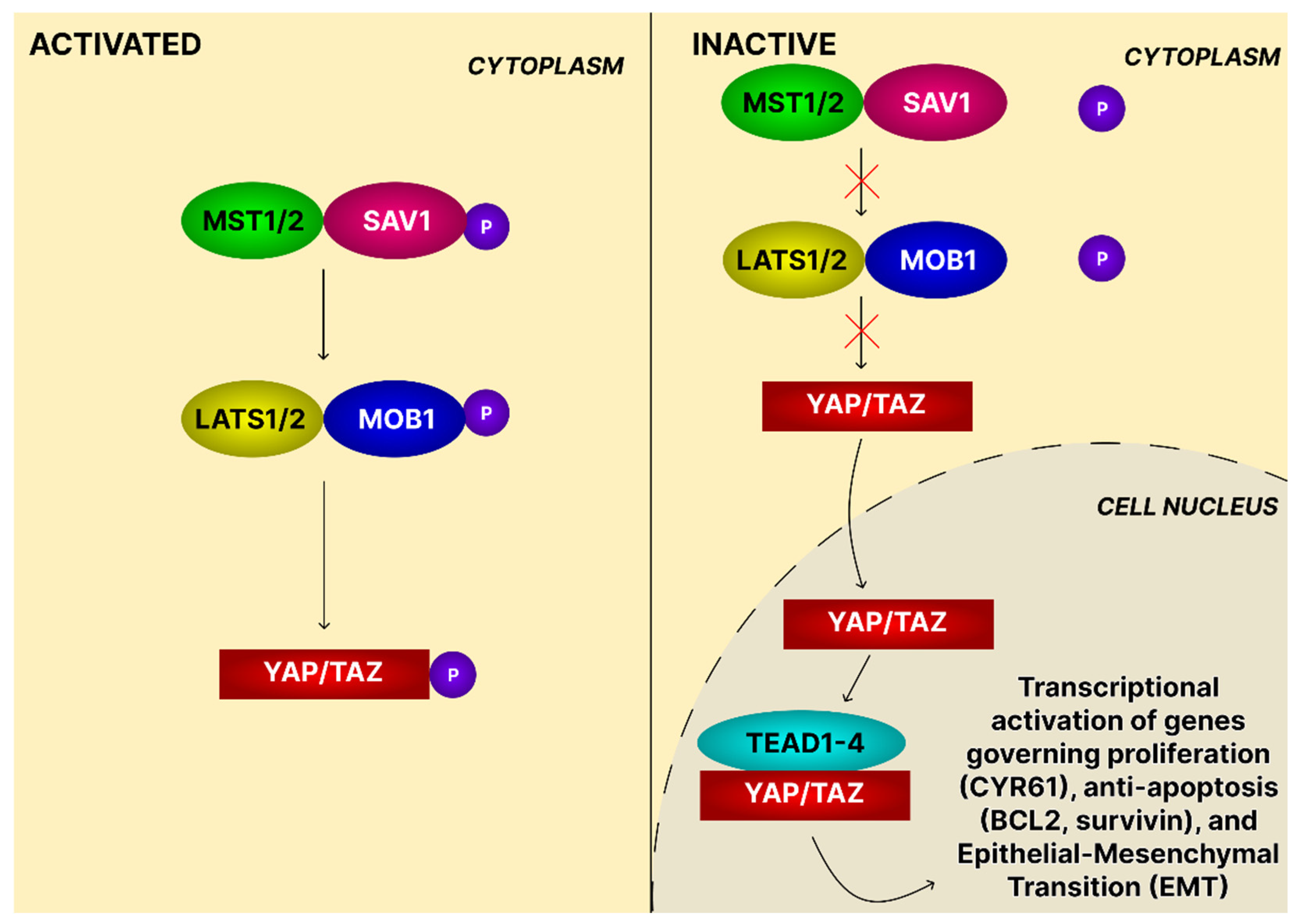 - Fu, M.; Hu, Y.; Lan, T.; Guan, K.L.; Luo, T.; Luo, M. The Hippo signalling pathway and its implications in human health and diseases. Signal Transduct. Target. Ther. 2022, 7, 376, Erratum in Signal Transduct. Target. Ther. 2024, 9, 5. [Google Scholar] [CrossRef]