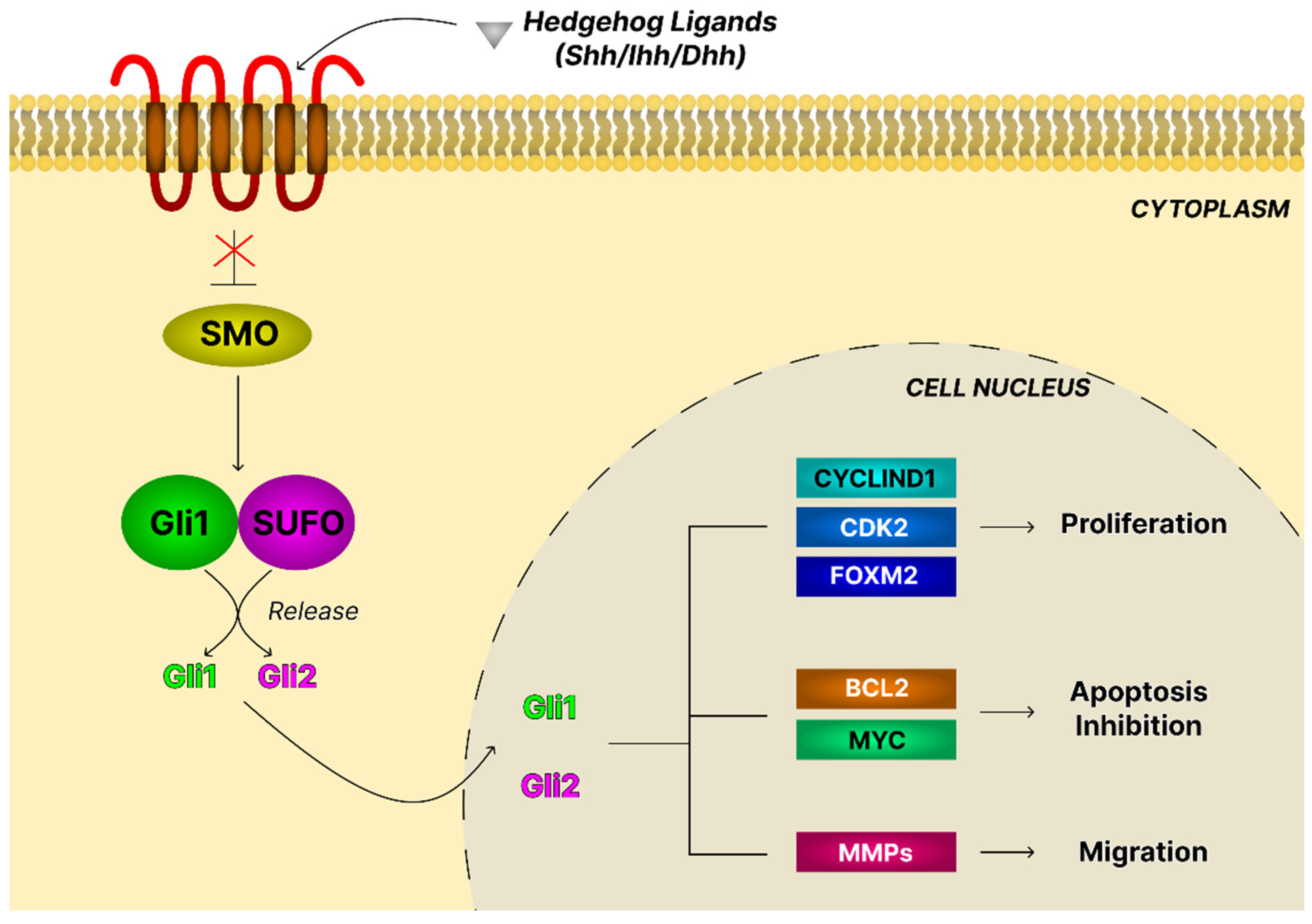 - Shen, D.; Xia, Y.; Fu, Y.; Cao, Q.; Chen, W.; Zhu, Y.; Guo, K.; Sun, L. Hedgehog pathway and cancer: A new area (Review). Oncol. Rep. 2024, 52, 116. [Google Scholar] [CrossRef] [PubMed]
