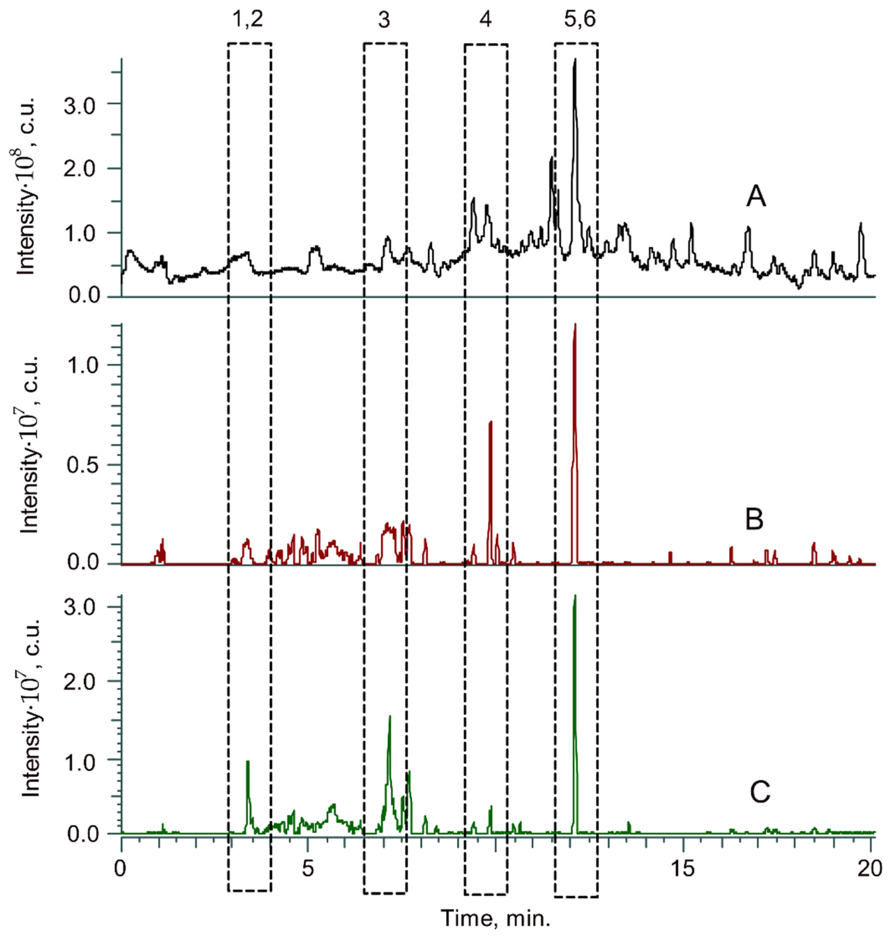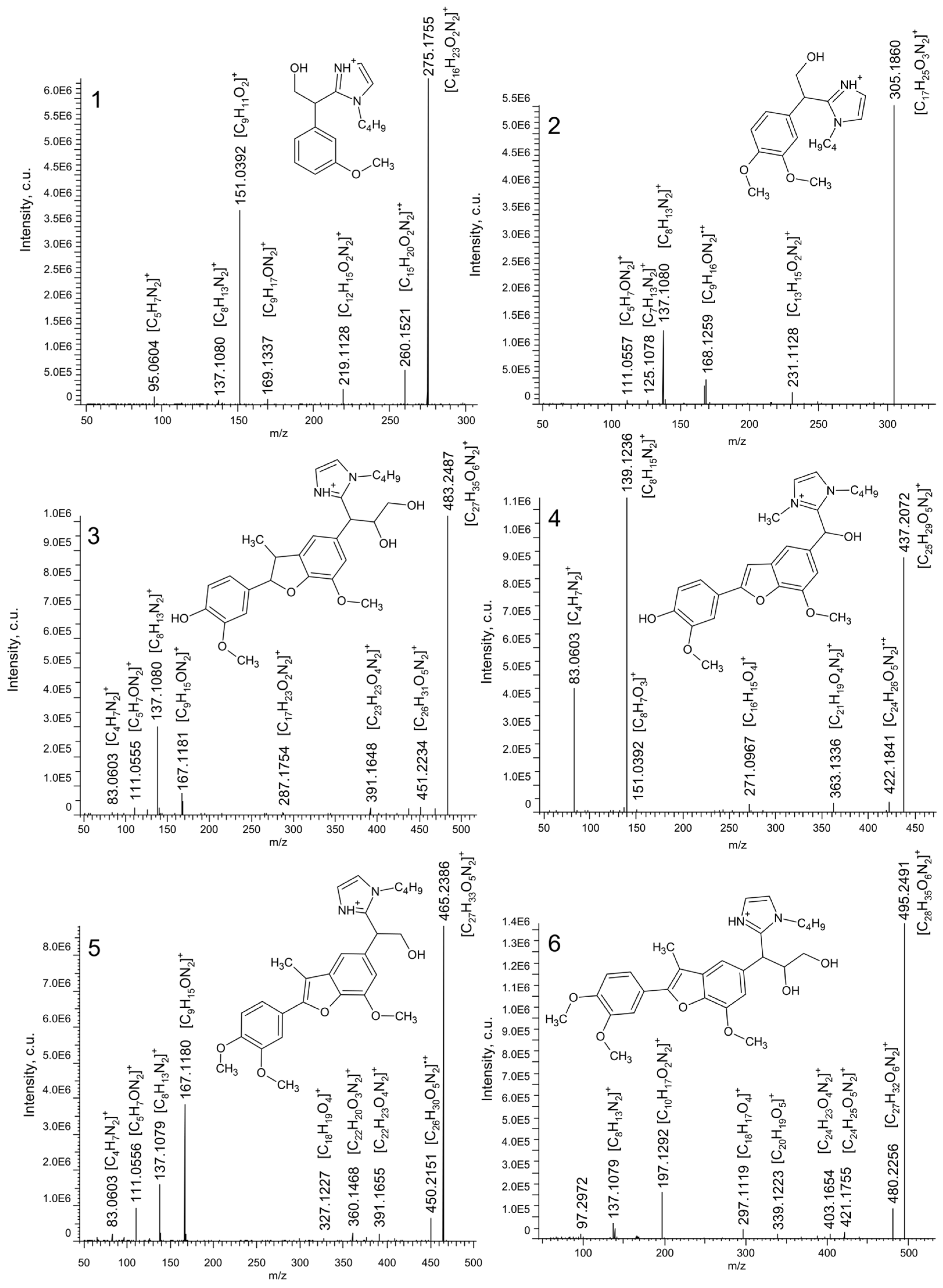 | No. 1 | Elemental Composition | RDB 2 | Retention Time, min | m/z | Δ, ppm |