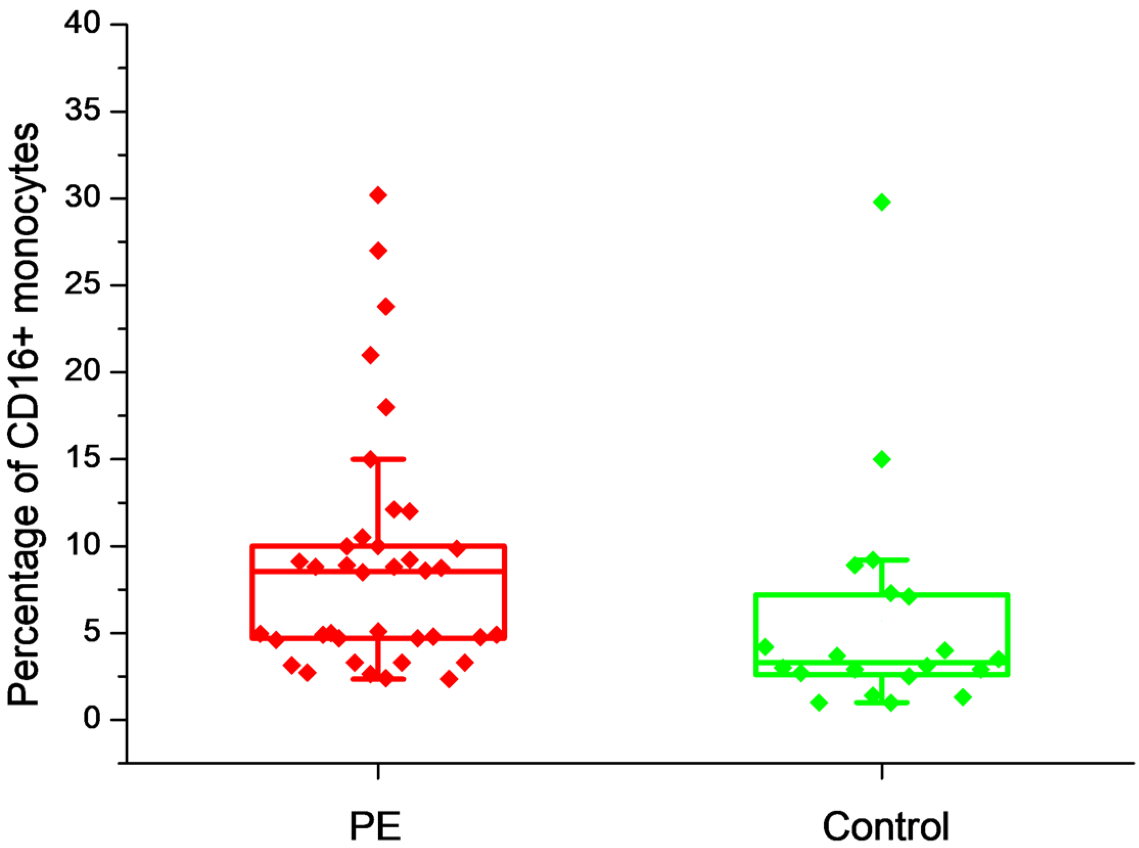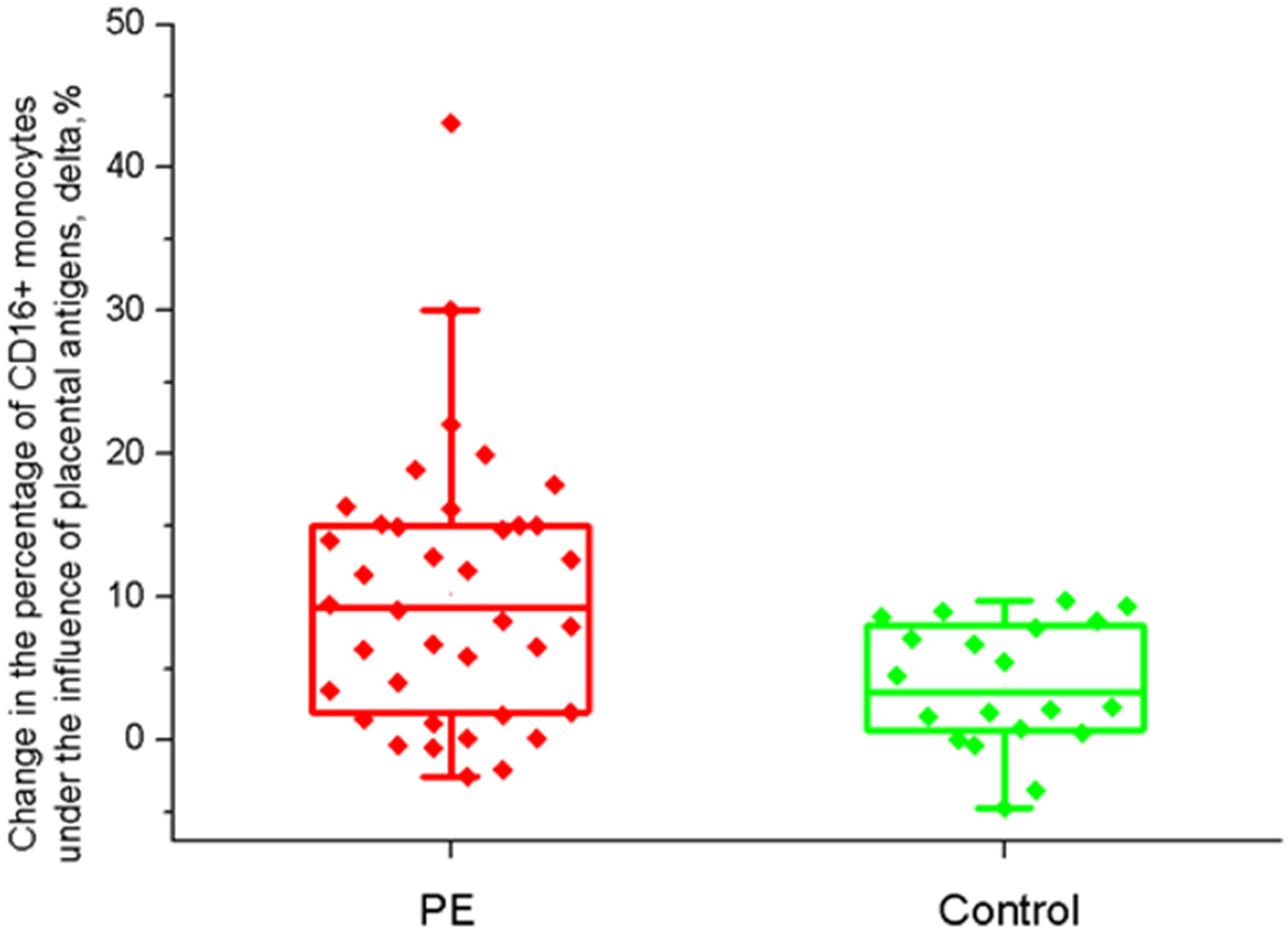 - Boris, D.A.; Volgina, N.E.; Krasnyi, A.M.; Tyutyunnik, V.L.; Kan, N.E. Prediction of Preeclampsia on the Couts of CD-16 Negative Monocytes. Obstet. Gynecol. 2019, 7, 49–55. [Google Scholar]